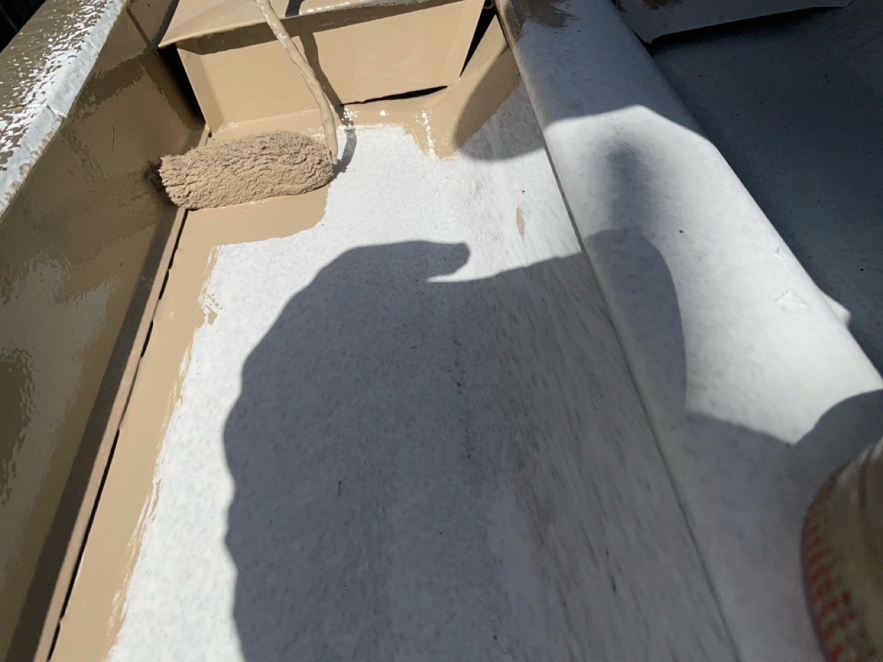 本日の作業は、2階屋根の塗装完了!パラペットの仕上げ塗装完了!1階屋根の中塗り塗装まで出来ました。明日も引き続き宜しくお願い致します。