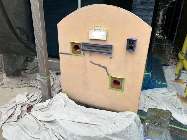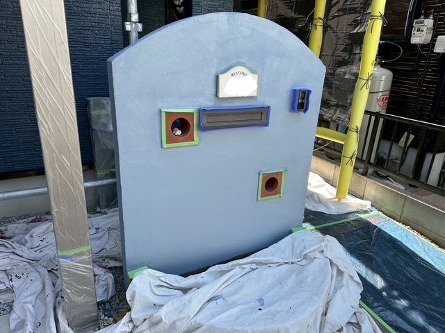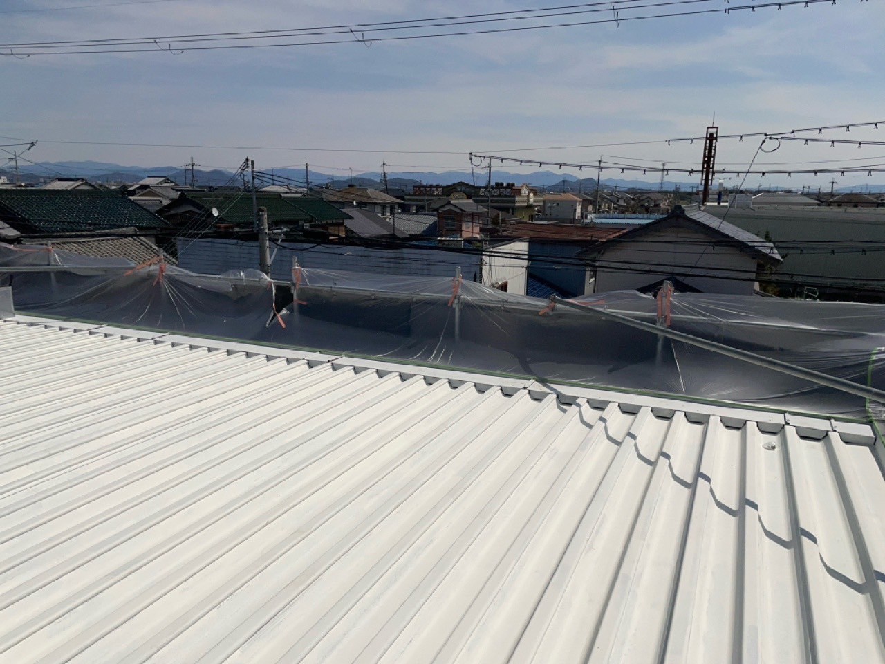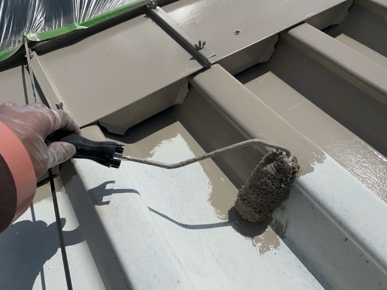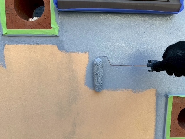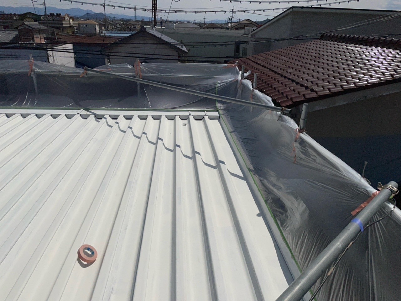 本日の作業は、屋根飛散防止養生をしてから中塗りをしました。明日も引き続き宜しくお願い致します。