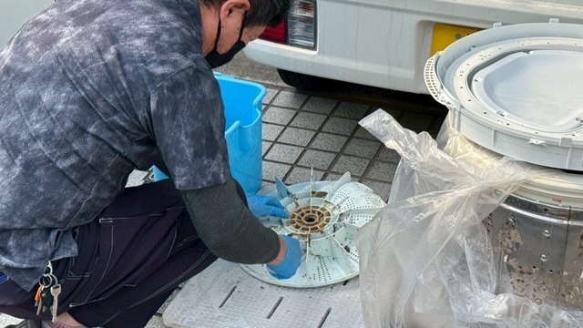 本日は、当社の事務員の自宅の洗濯機の洗い工事をしました。5年位使用してたから大分汚れてたかな笑!綺麗になったし毎日洗濯するのが嬉しいやろ(^^)何時も色々な仕事依頼ありがとうな!当社で働いてるからお家の事は、何の心配もいらんな笑笑笑!