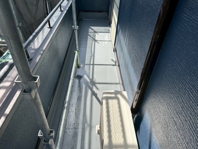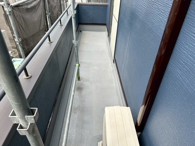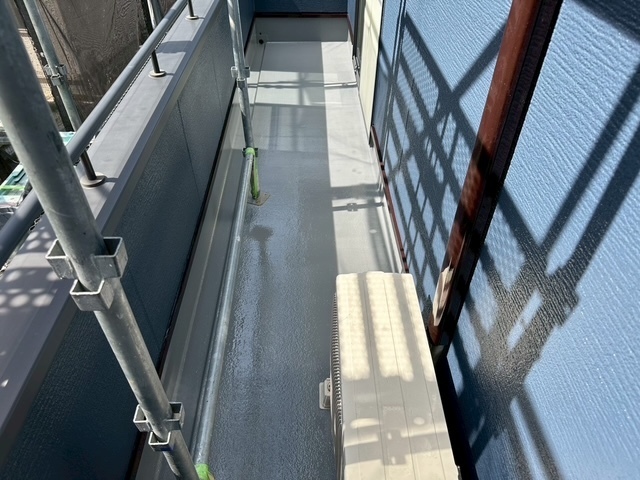 本日の作業は、塀の塗装工事も終わらせてベランダの床の防水も仕上げてライン出しまでいけました。一応全て終わりましたが、明日は、職人の目でしっかり確認タッチアップ等をして頂き後日、私が最終検査をしに行きますね。引き続き宜しくお願い致します。