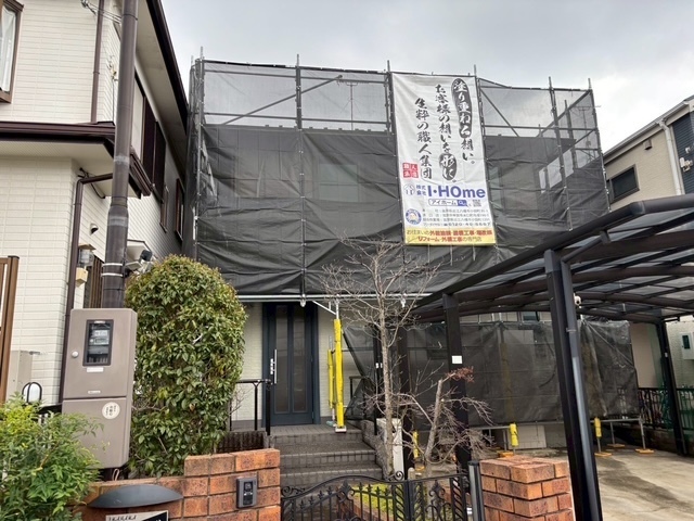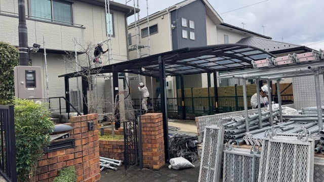 本日の作業は屋根外壁塗装の足場の組み立て工事をしました。引き続きよろしくお願いいたします。