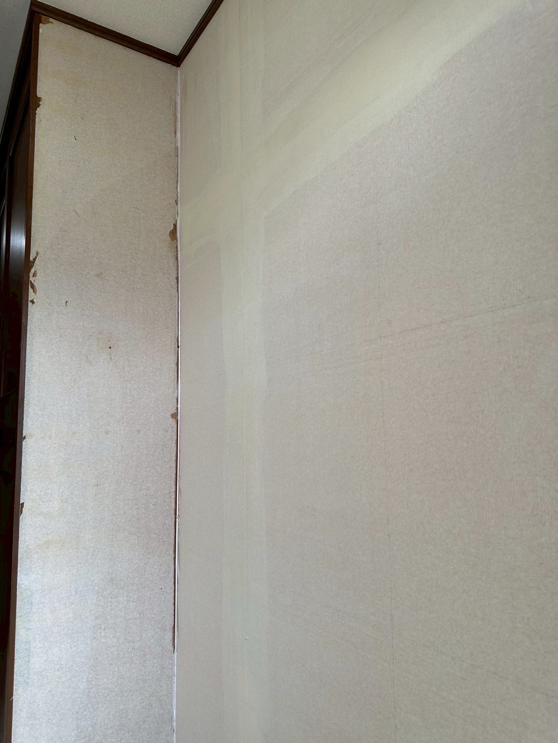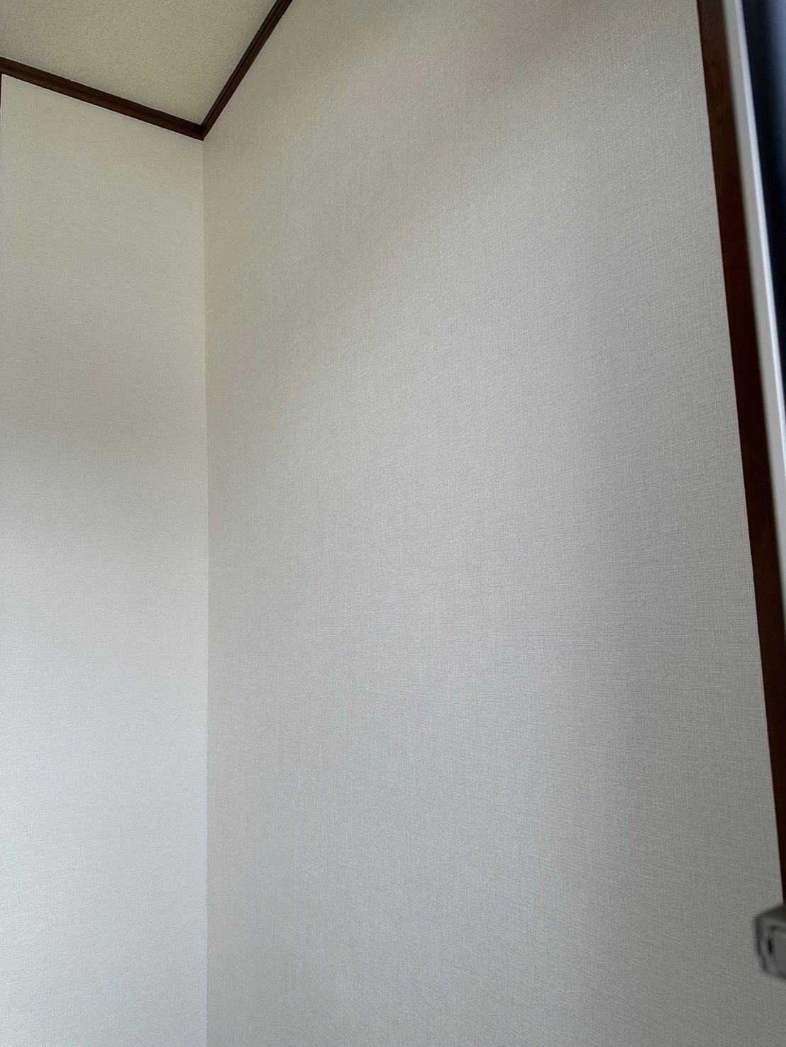 本日は作業は、トイレの壁と天井のクロス張り替えと玄関入り口の壁のクロス張り替え工事をしました。トイレの空間が花柄で素敵になりましたね(^^)引き続き宜しくお願い致します。