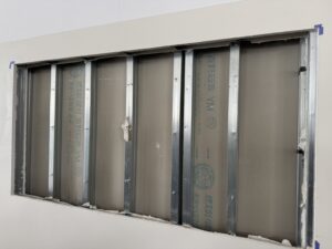 本日の工事は壁の下地や開口部の窓枠などの施工を行い夕方に玄関ドア枠が届きましたので組み立てて設置しました。明日は玄関部の土間打設を行います。引き続きよろしくお願いいたします。またアップします。