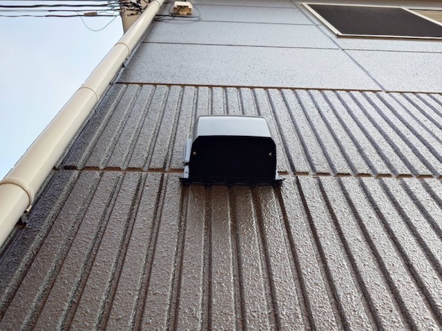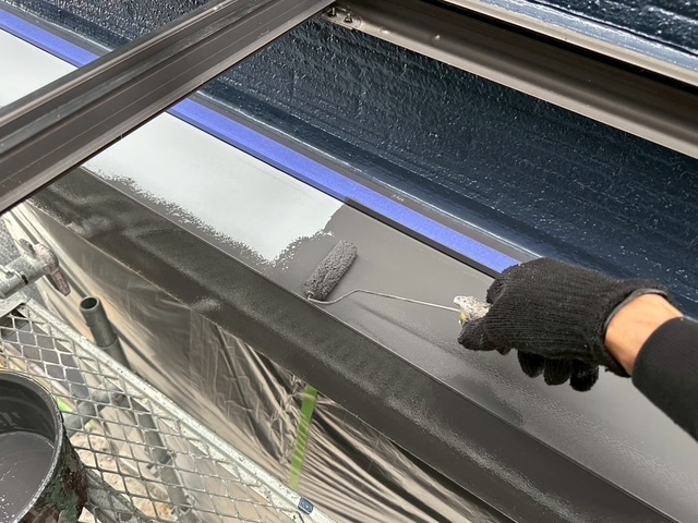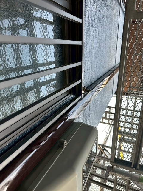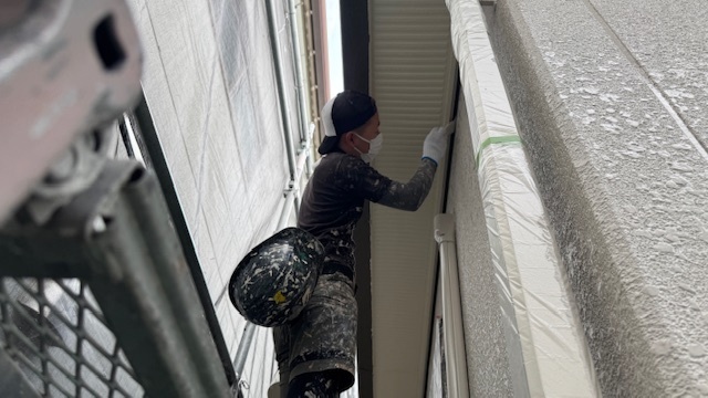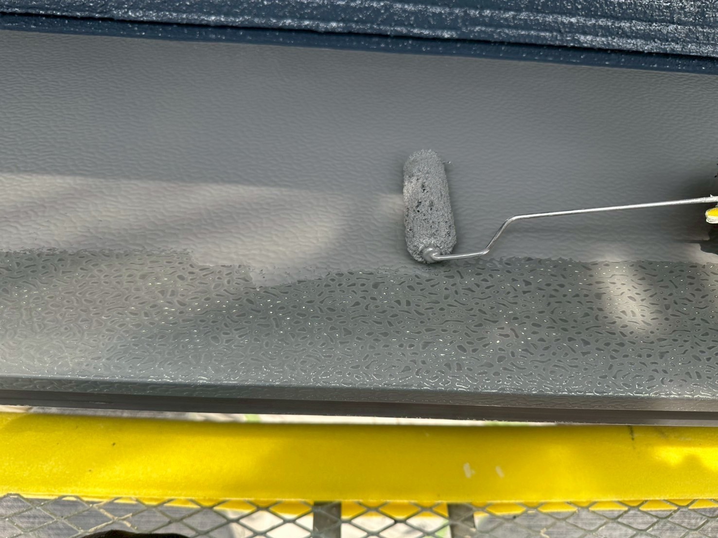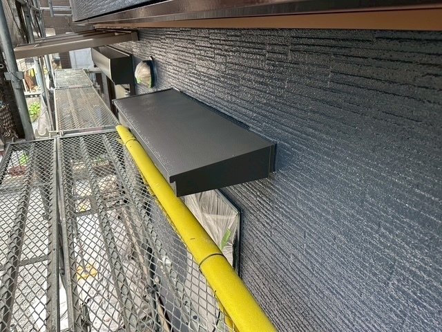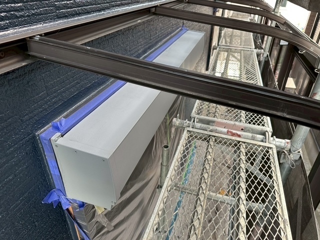 本日の作業は、養生めくりと付帯部(シャッターボックス、水切り板金、小庇)塗装とスリムダクトの取り付けをしました。引き続き宜しくお願い致します。