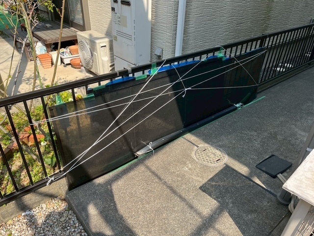 本日の作業は、屋根外壁塗装の足場を組み立てるのに干渉するカーポート、テラスのパネルの取り外しをしました。引き続き宜しくお願い致します。