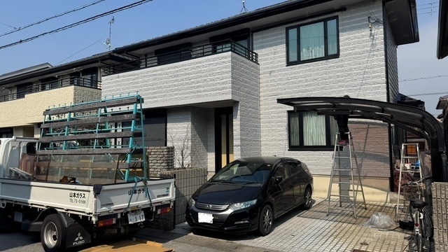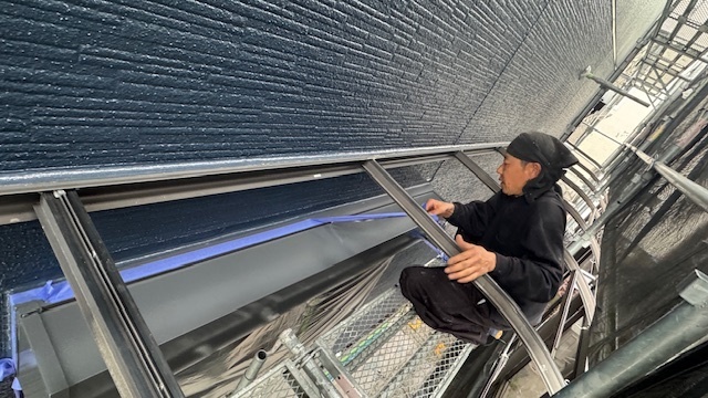 本日の作業は、外壁の上塗り塗装をしました。引き続き宜しくお願い致します。