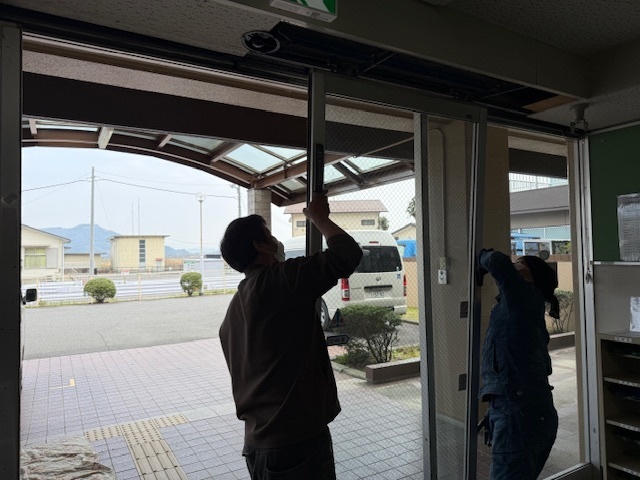 本日の工事は自動ドアの鍵の交換を行いました。古い自動ドアで同じ形状の鍵がなかったので現場で加工しながらの作業になりました。自動ドアの調整もしっかり行いました。仮設置していたインターホンも本施工させていただきました。Sさまいつもありがとうございます。今後ともよろしくお願いいたします。