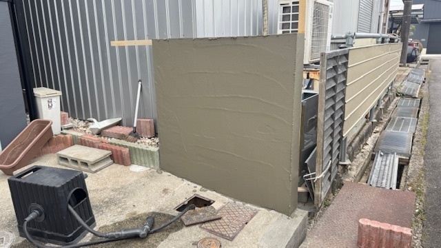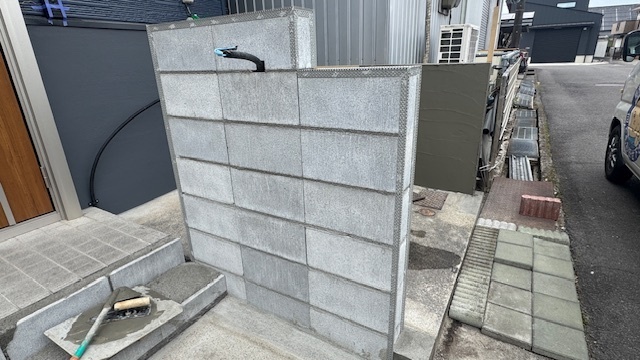 本日の作業は、ジョリパッド仕上げをする前に積んだブロックを全面モルタルでコテ塗り下地しました。引き続き宜しくお願い致します。