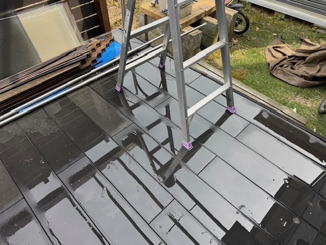 本日の作業は残っていた塗装作業の水切りやポストの塗装を完了させて、ウッドデッキなどの掃除も行いました。サービスで割れていたブロックの簡易補修と剝がれていたタイルの接着もさせていただきました。明日はテラスパネルを復旧して最終点検して完了となります。引き続きよろしくお願いいたします。またアップします。