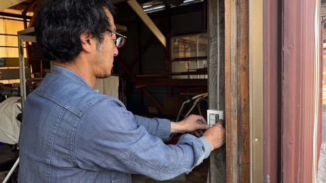 本日の作業は、照明器具取り付け、コンセント取り付け配線接続工事と関電さんに使ってない外部の電気メーターと電線の撤去をしてもらってから外部のメーターボックスの撤去をしました。明日仮設電柱もフェンスの高さくらいでカットして空洞の穴を板金で蓋をしておきますね。引き続き宜しくお願い致します。