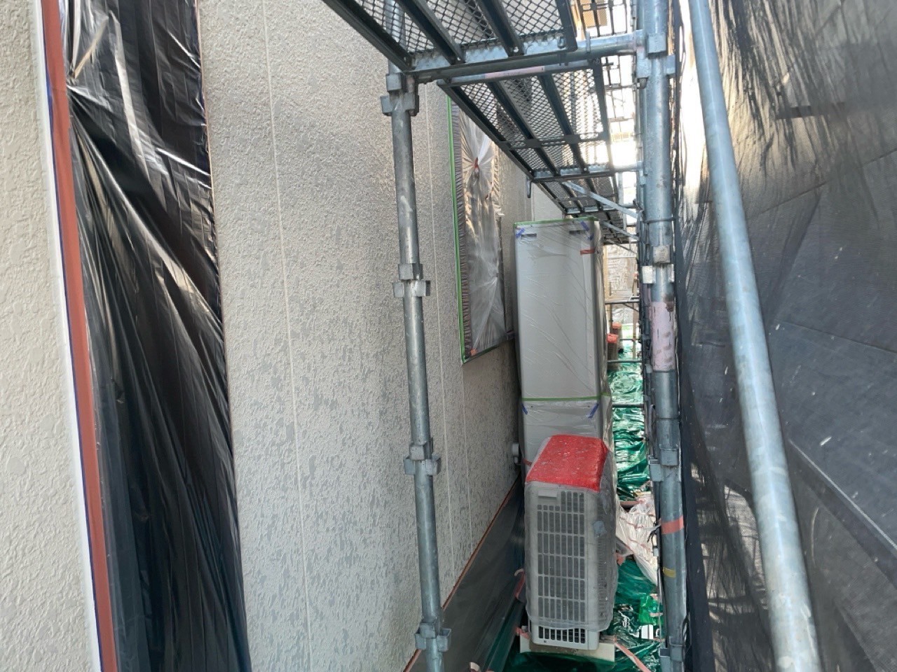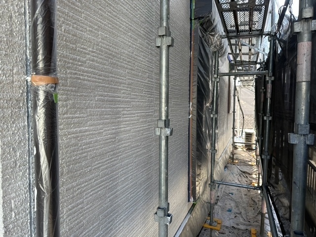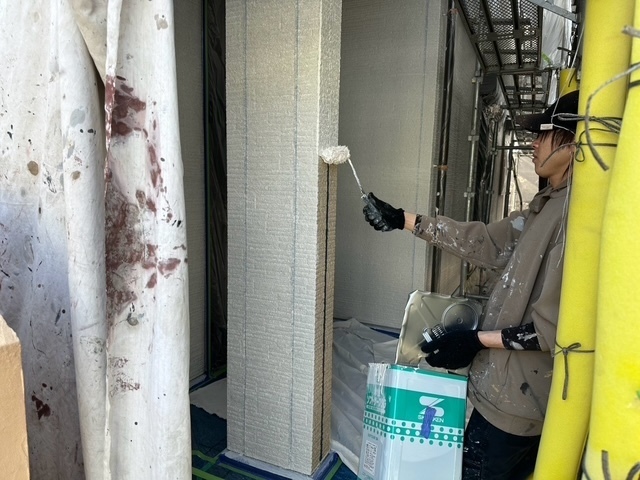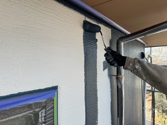 本日の作業は、外壁の下塗り中塗りまでと刷毛取りをしました。明日も引き続きよろしくお願い致します。