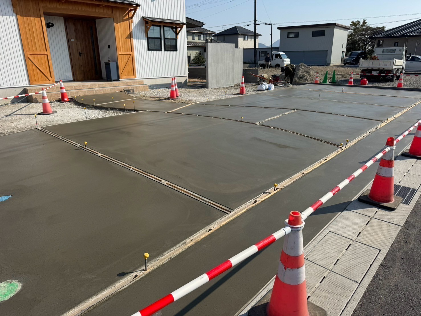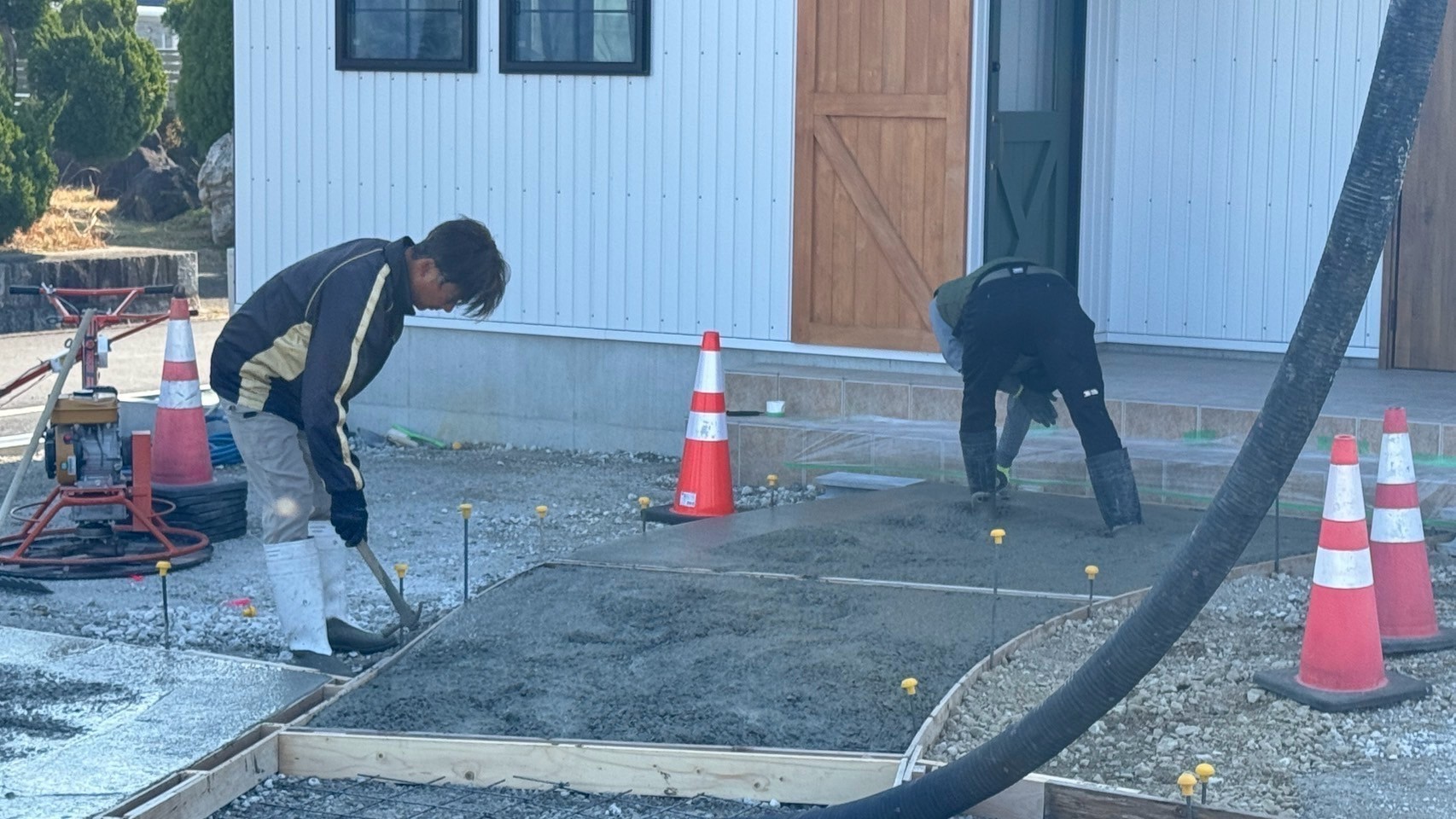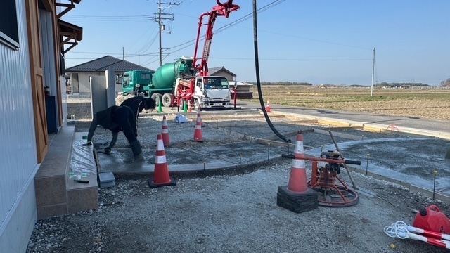 本日も朝から生コン車とポンプ車でコンクリートの打設をして土間を均して押さえ仕上げをしました。引き続き宜しくお願い致します。
