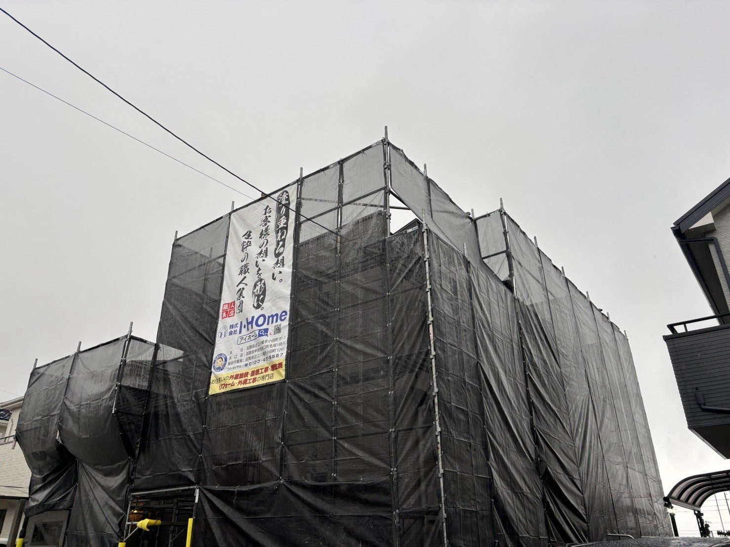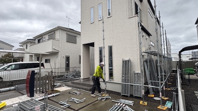 今日は、午後から屋根外壁塗装の足場組み立て工事をするのにテラスのパネルが干渉する箇所がありますので午前中に取り外し作業をしました。引き続き宜しくお願い致します。