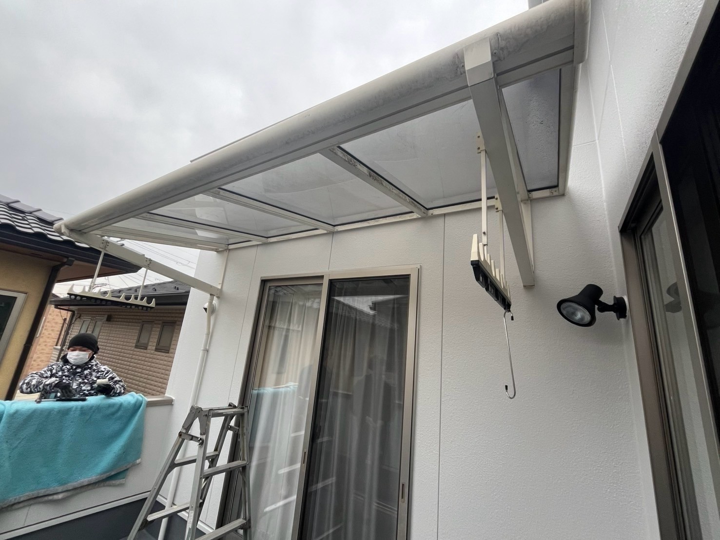 本日の作業は、サイクルポートと2階のベランダのテラスのパネルの復旧作業を終えてからテラスの竪樋のジャバラが老朽化で破損してましたので新しい部材で取り替え作業もしました。塀の色も決まったので後日、塗りにいきますね(^^)引き続き宜しくお願い致します。