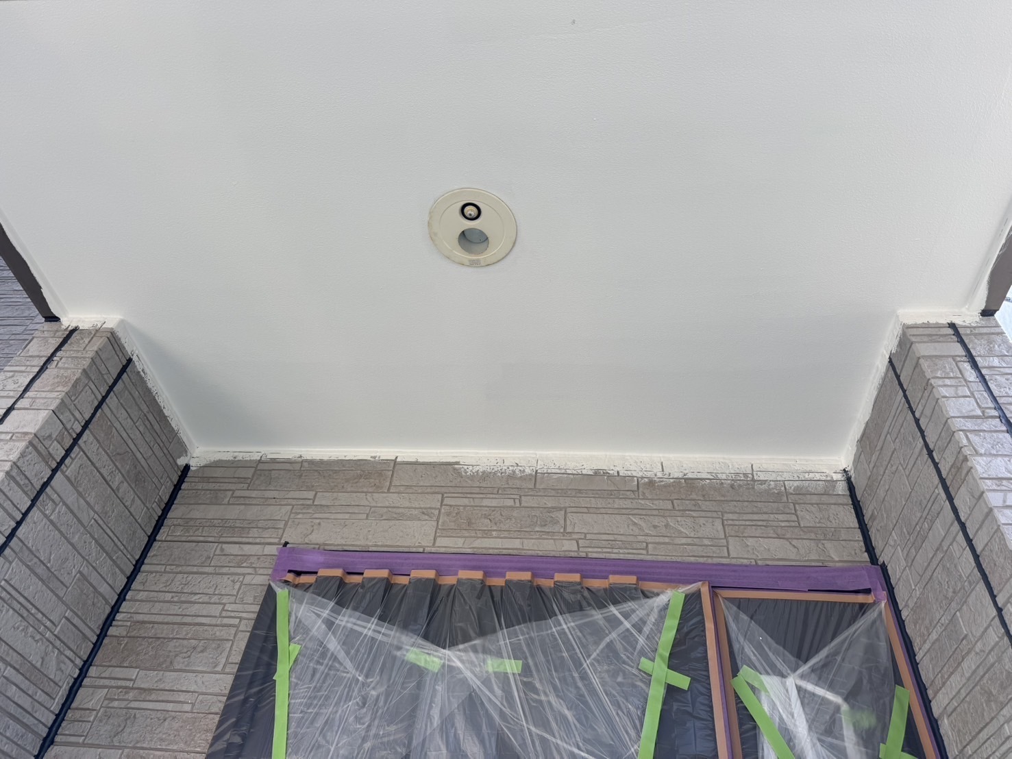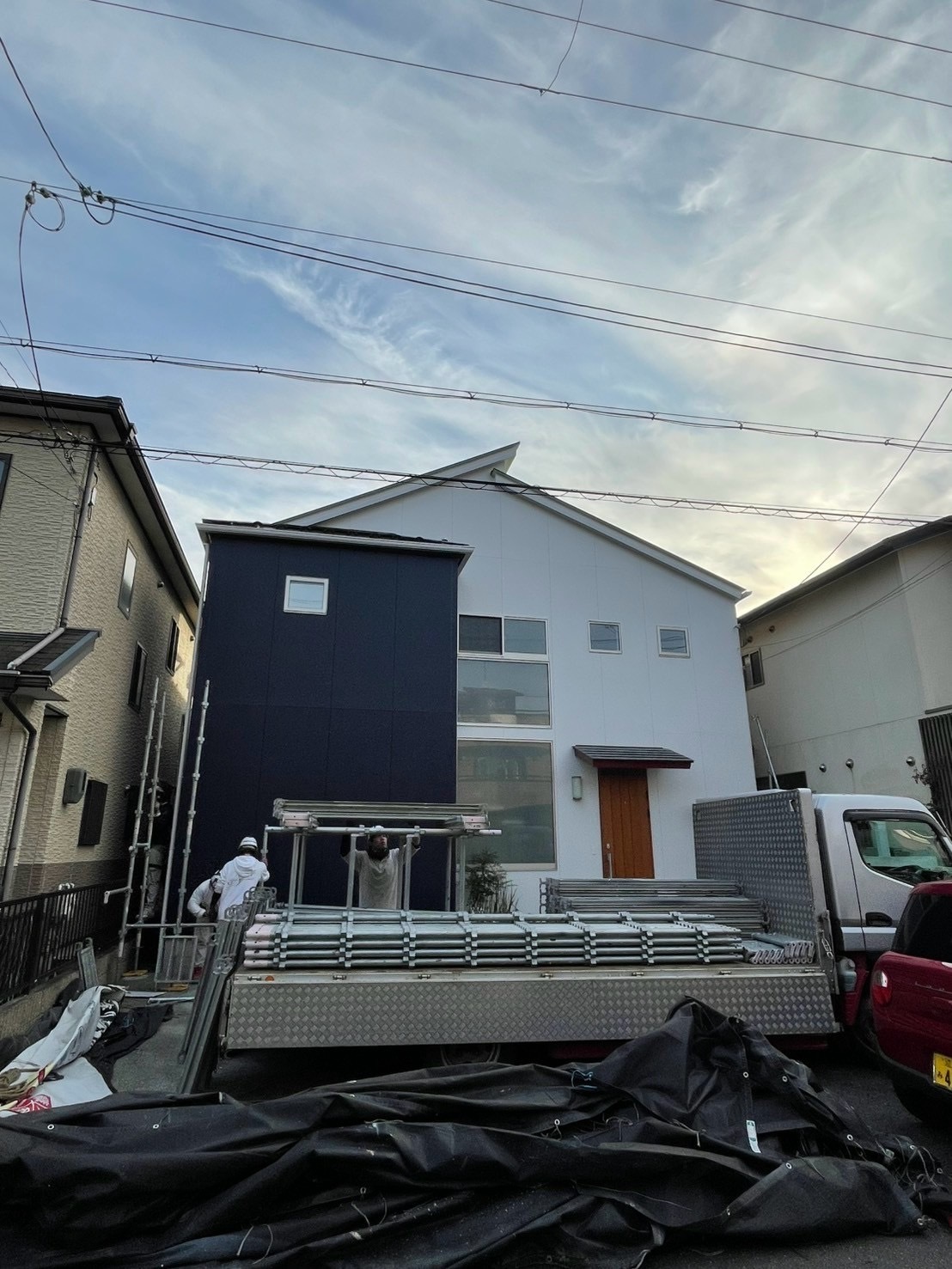 本日の作業は、玄関の軒天の仕上げ塗装と外壁の中塗りを進めました。明日は天気が微妙ですが晴れれば人数入れて進める予定です。引き続き宜しくお願いします。またアップします。