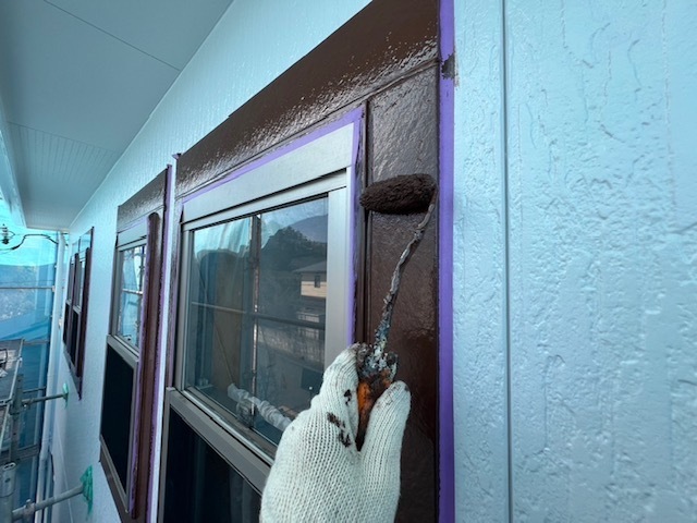 今日は付帯部の仕上げと掃除やタッチアップを周りました。Tさま邸、塗装作業完了です。窓枠の茶系がほんと素敵です。早く足場を取って全体を見たいですね。またアップします。