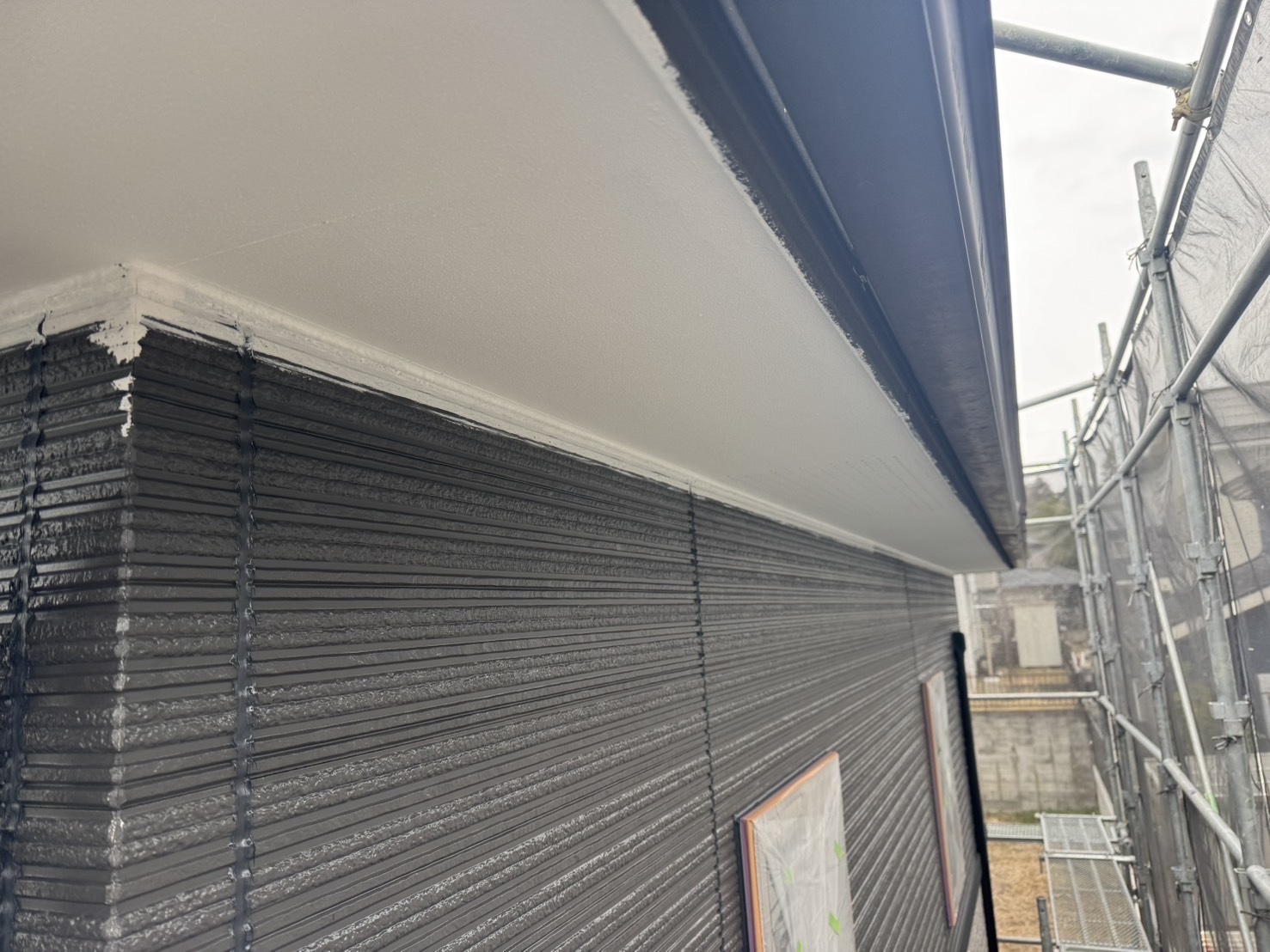 今日の作業は軒天を2回塗装しました。もともとグレーだったのを白にしましたが2回でしっかり色も止まりきれいに仕上がりました。月曜日から外壁の中塗りなど進めていきます。引き続きよろしくお願いいたします。またアップします。