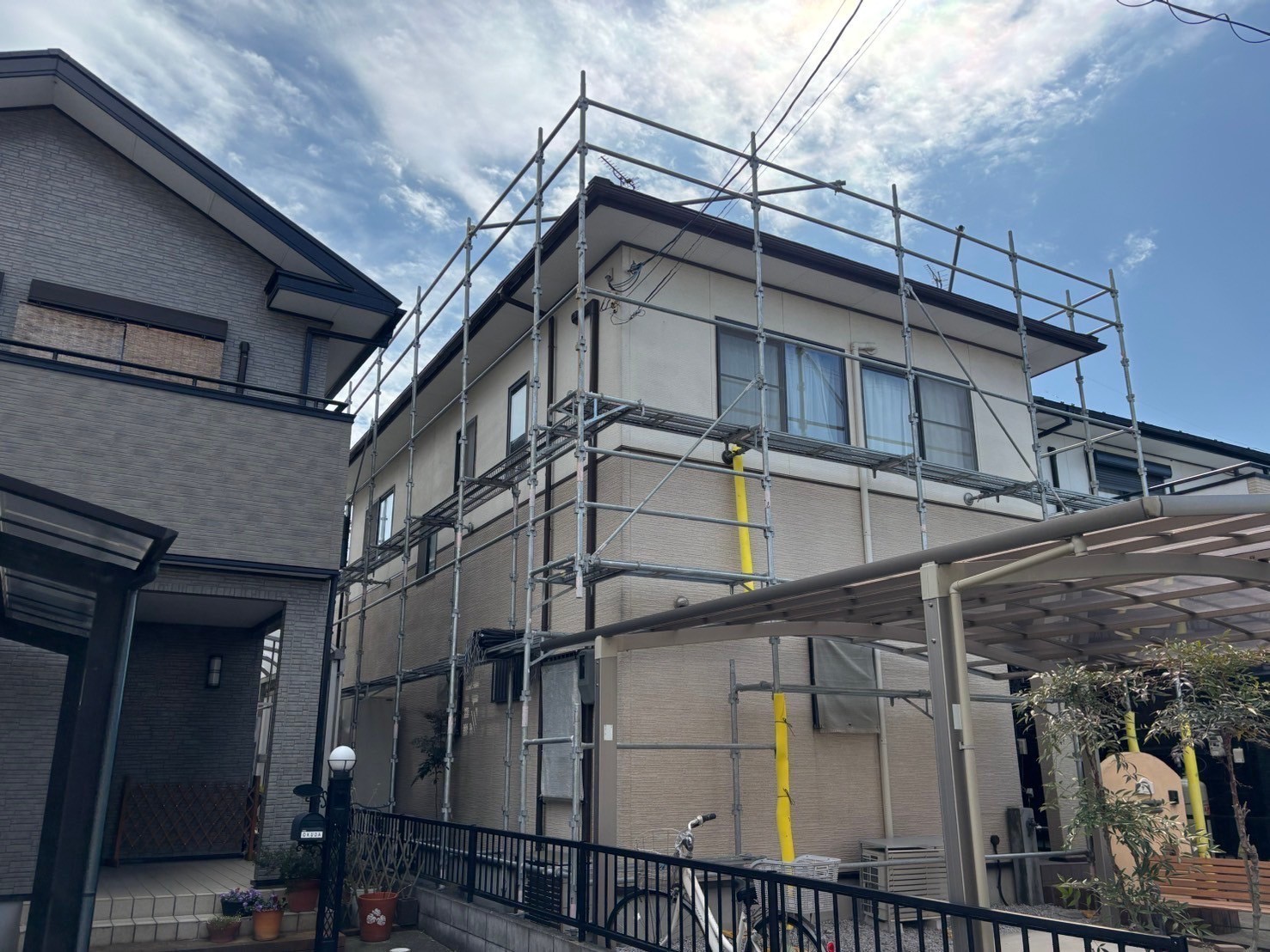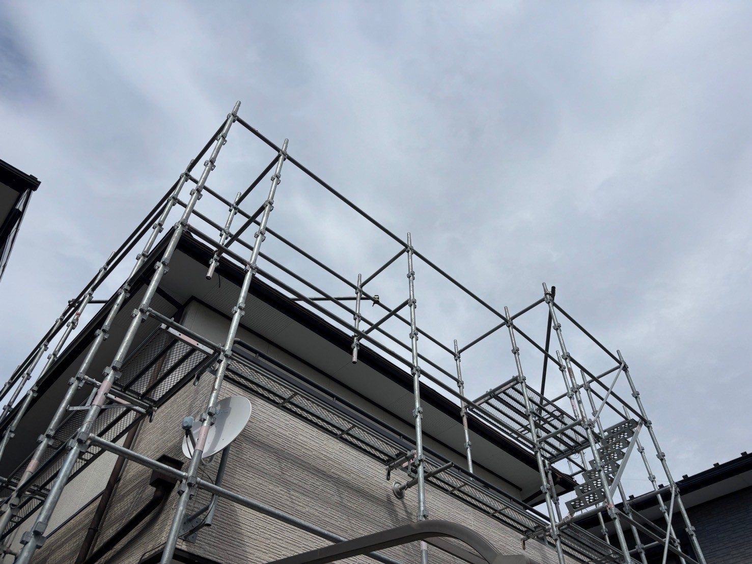 暖かく日も長くなってきたので慌ただしくなってきました。本日は屋根、外壁塗装の足場の組み立て工事をしました。引き続きよろしくお願い致します。