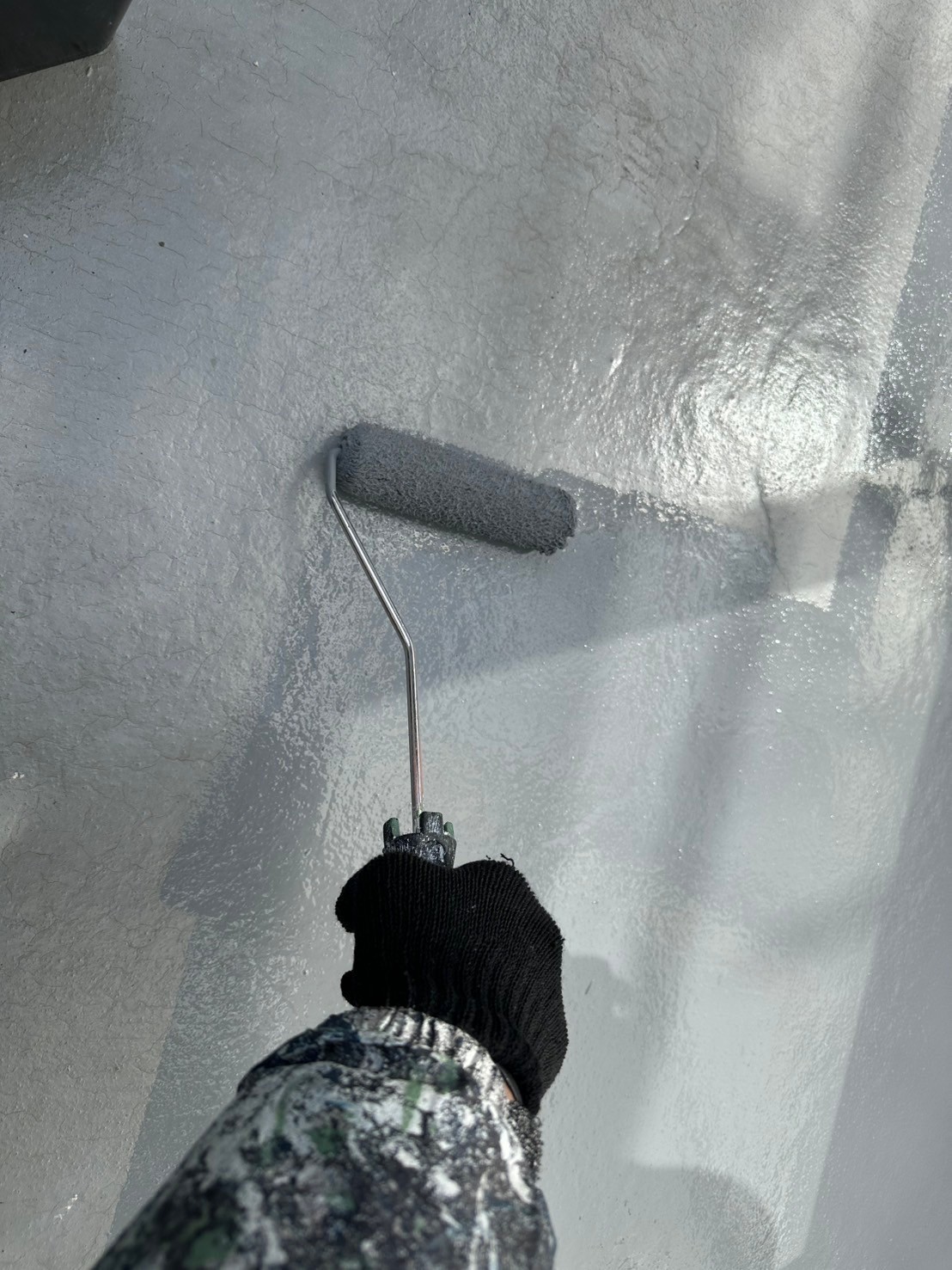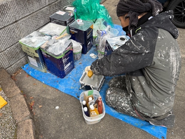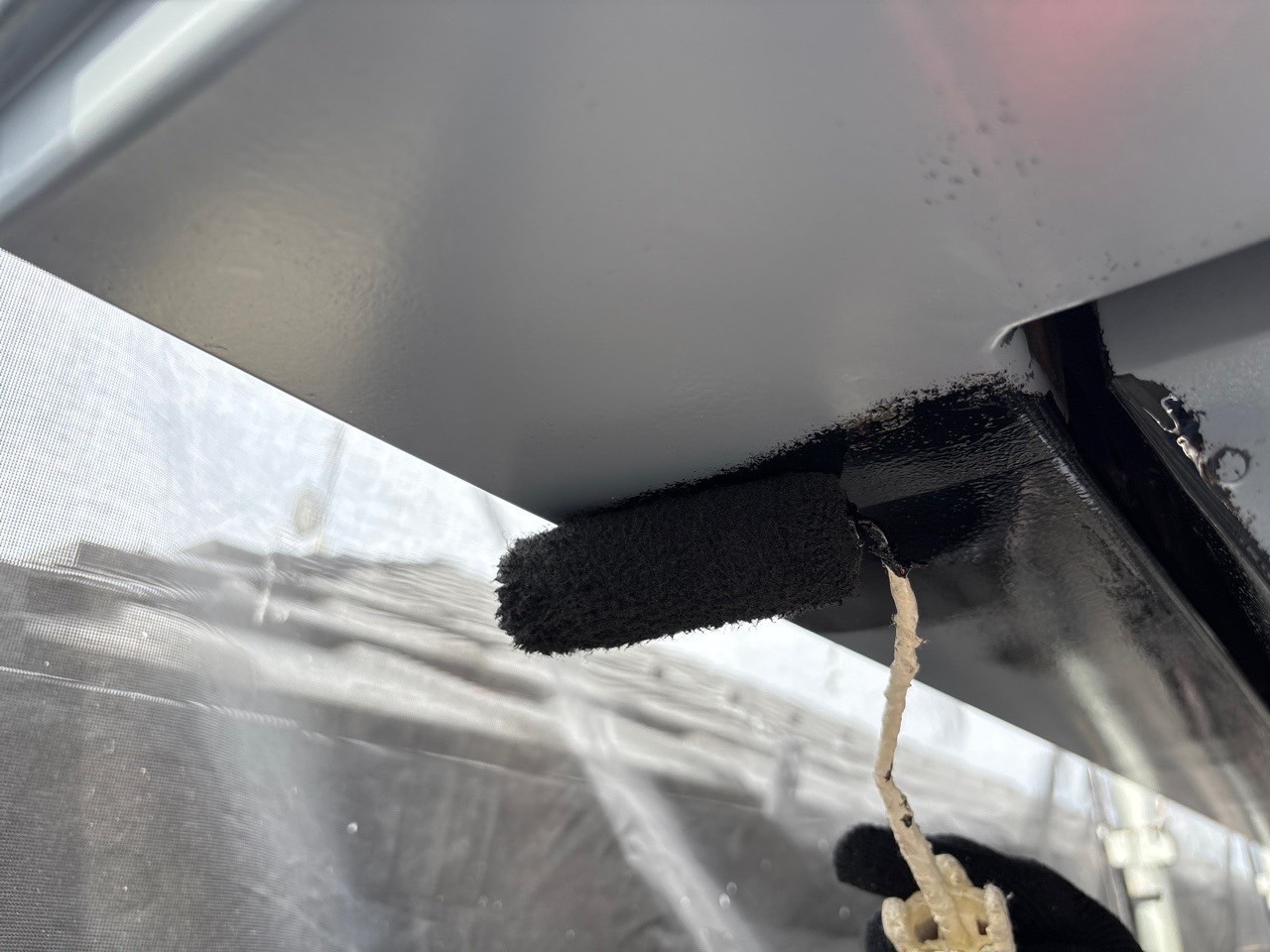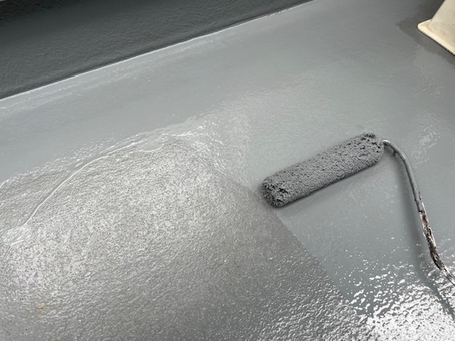 今日は付帯部の塗装の続きとウレアックスHGをベランダに塗布しました。プライマー、中塗りまで仕上げております。月曜日にベランダ仕上げてシャッターボックス2回目と窓枠塗装しタッチアップや掃除をして完了予定です。シャッターボックスの色もベテラン職人が現場でバッチリ調色してくれました。お客様もサッシの色と同じで職人技に驚いておられました。本当に丁寧に進めていただいて喜んでますと嬉しいお言葉もいただきました。引き続きよろしくお願いいたします。またアップします。