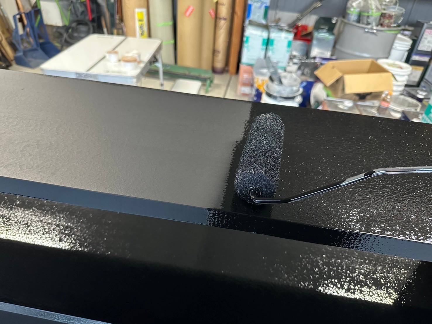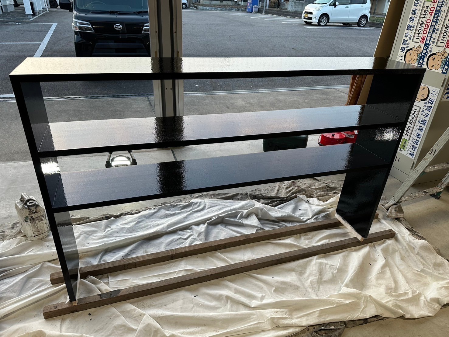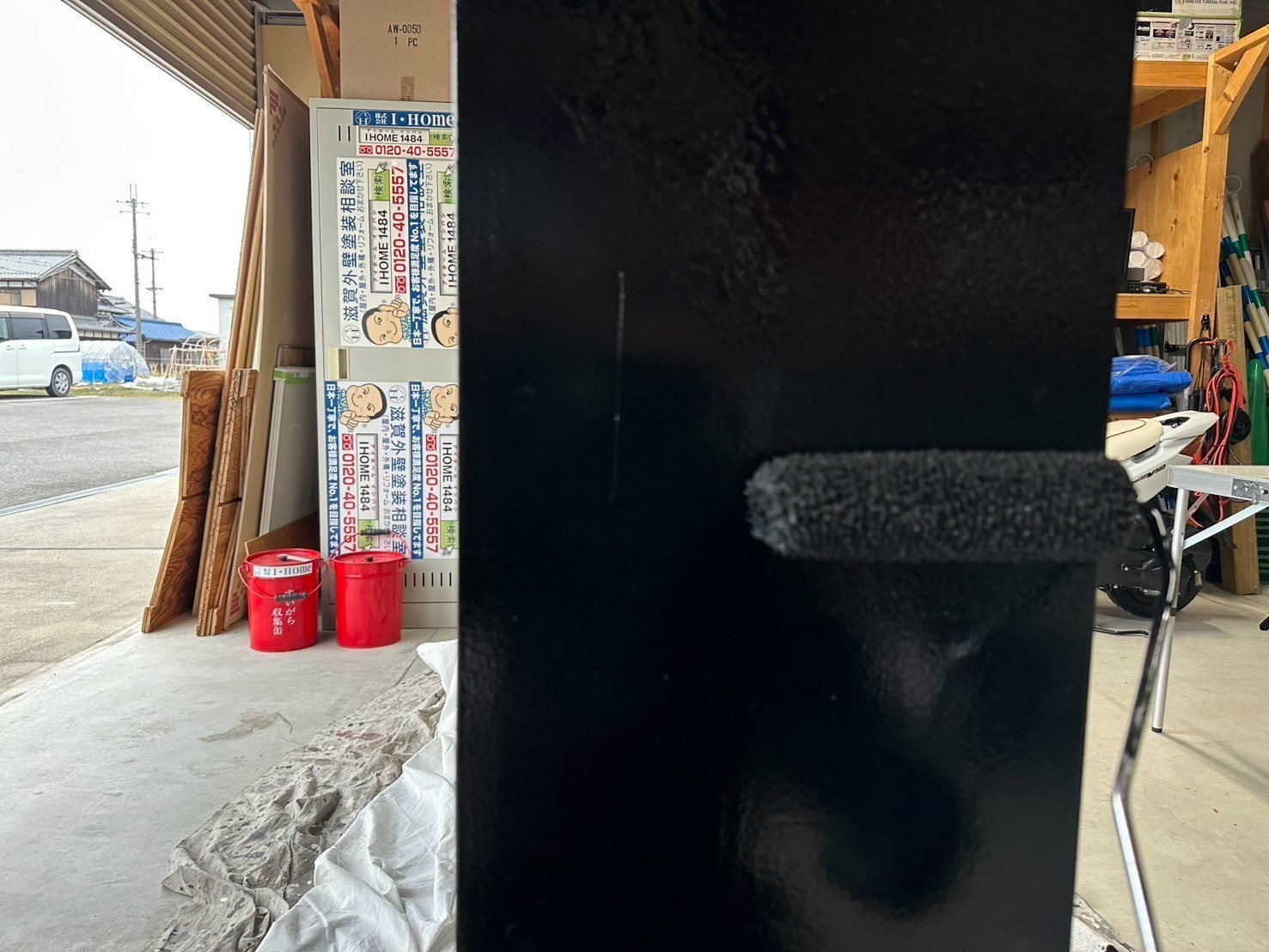 早朝から2回目の中塗りをして夕方から3回目の仕上げ塗りをしました。しっかりと乾燥させて明日検査して店舗に夜か次の日の朝に納めに行きますね!宜しくお願い致します。