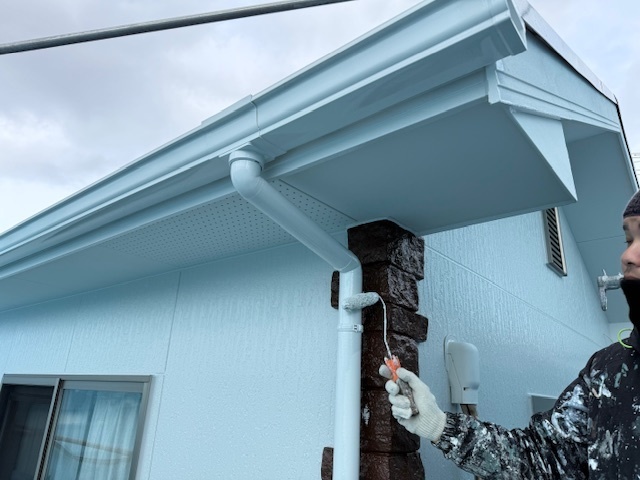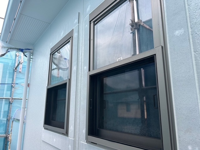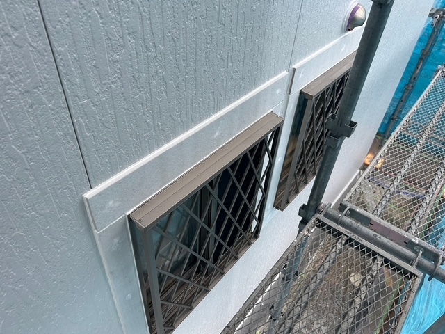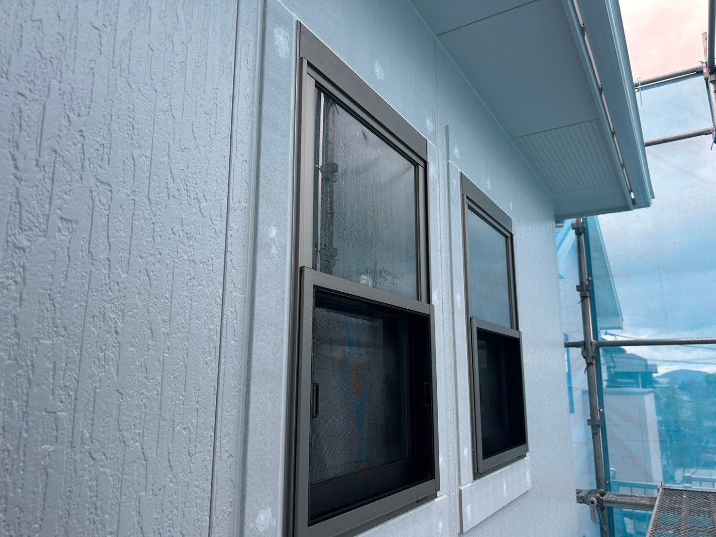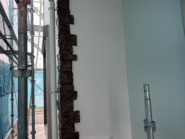 本日の工事は付帯部の塗装工事と窓のモール取り付け工事を進めました。出隅の茶色のアクセントが素敵です。窓モールも同じ茶色で塗装していきます。引き続きよろしくお願いいたします。またアップします。