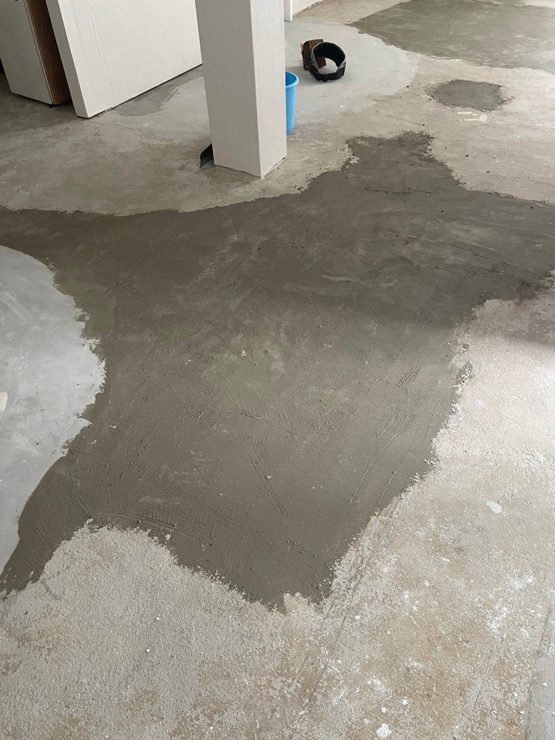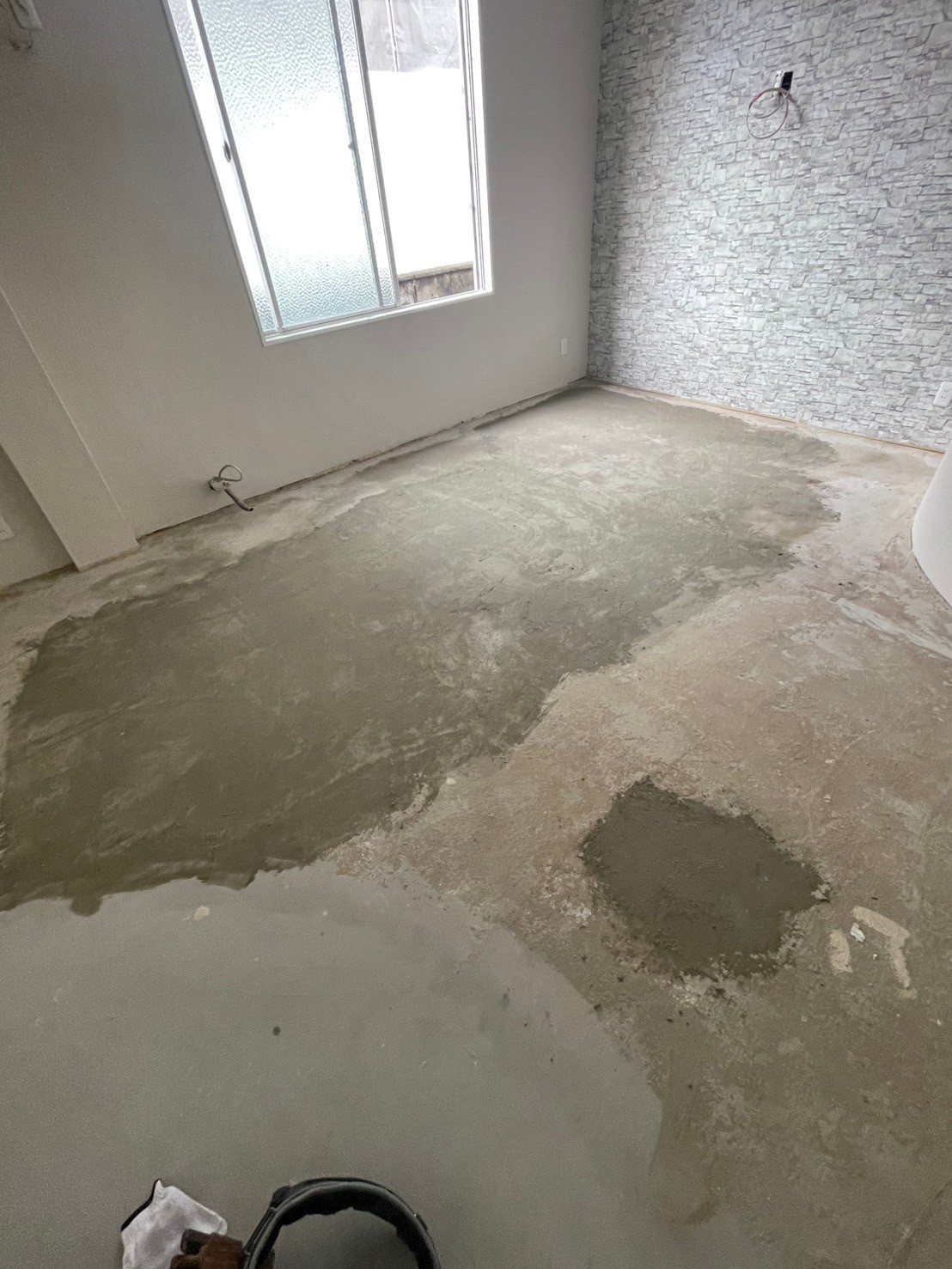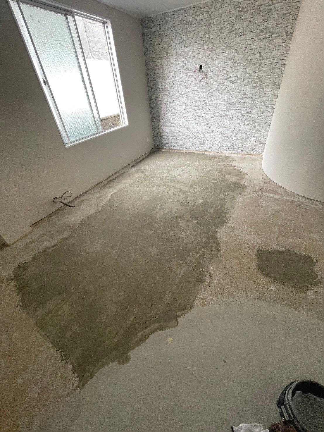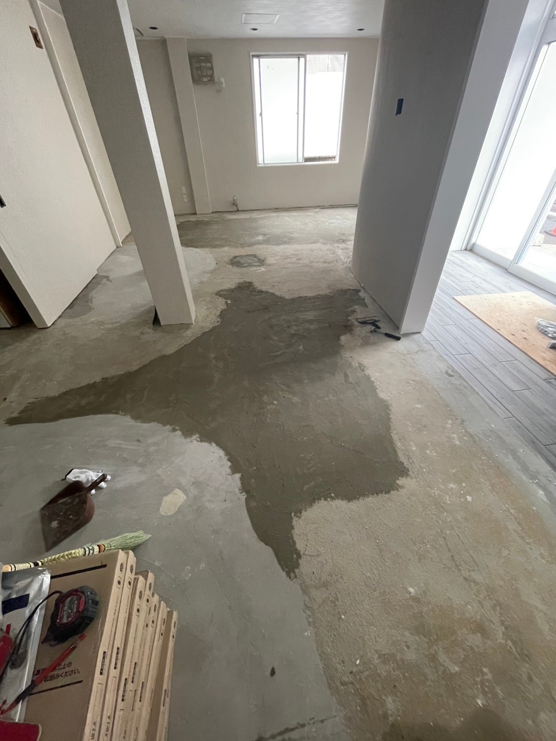 本日の作業は、フロアタイルを張っていく前に職人に綺麗に並べて張ってもらうのにもう一度しっかりとラインセメントで下地のレベル調整をしました。バッチリ!さぁ、乾燥したら今日は床に大理石調のタイルを張っていきますね。楽しみにしといてください。引き続き宜しくお願い致します。