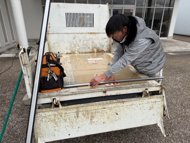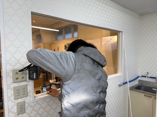 本日の作業は窓枠に新設ガラスの設置を行いました。現場でガラスをカットし設置しました。大きな開口で事務所スペースが明るくなりましたね。来週は塗装工事に入っていきます。引き続きよろしくお願いいたします。またアップします。