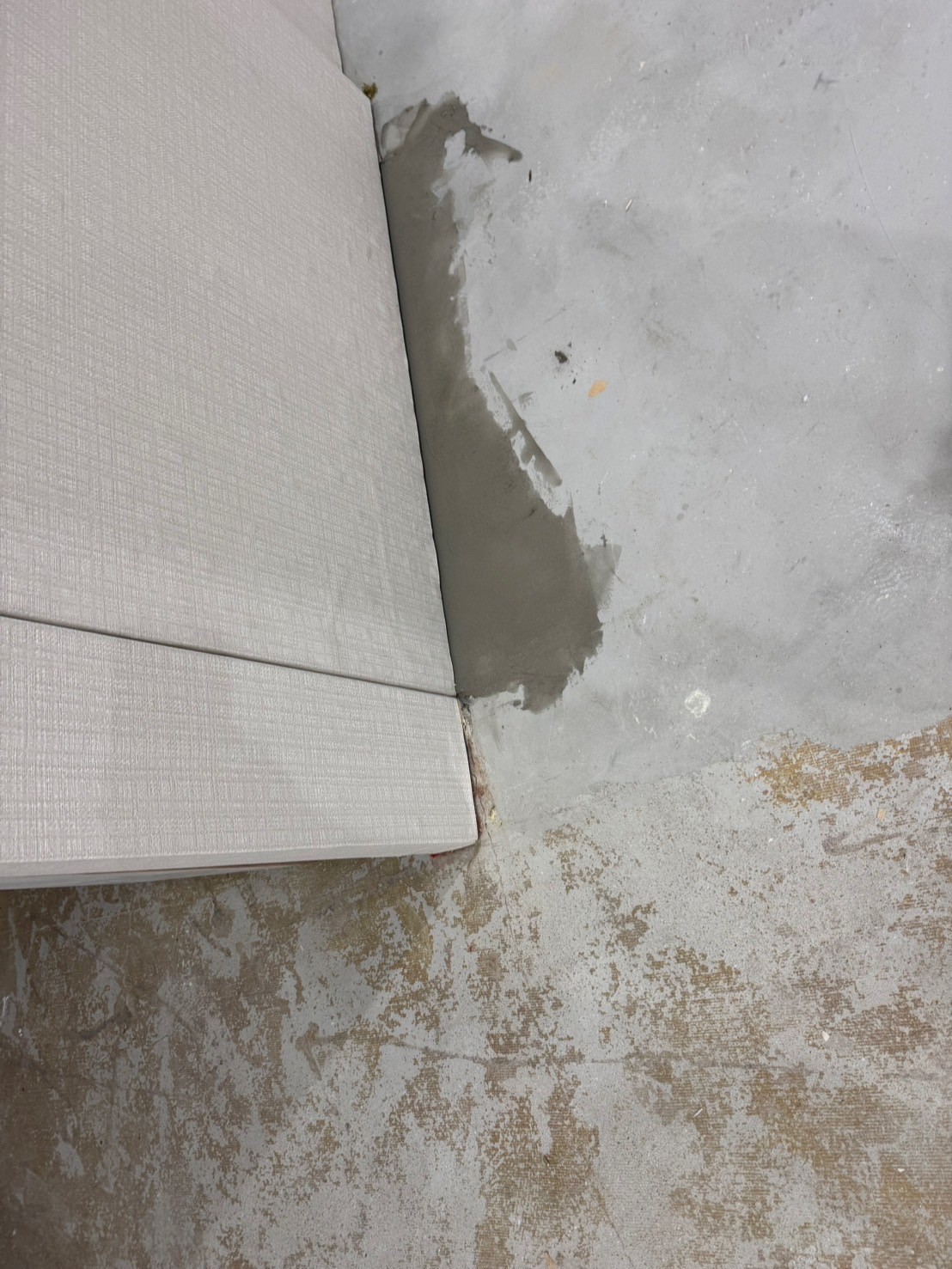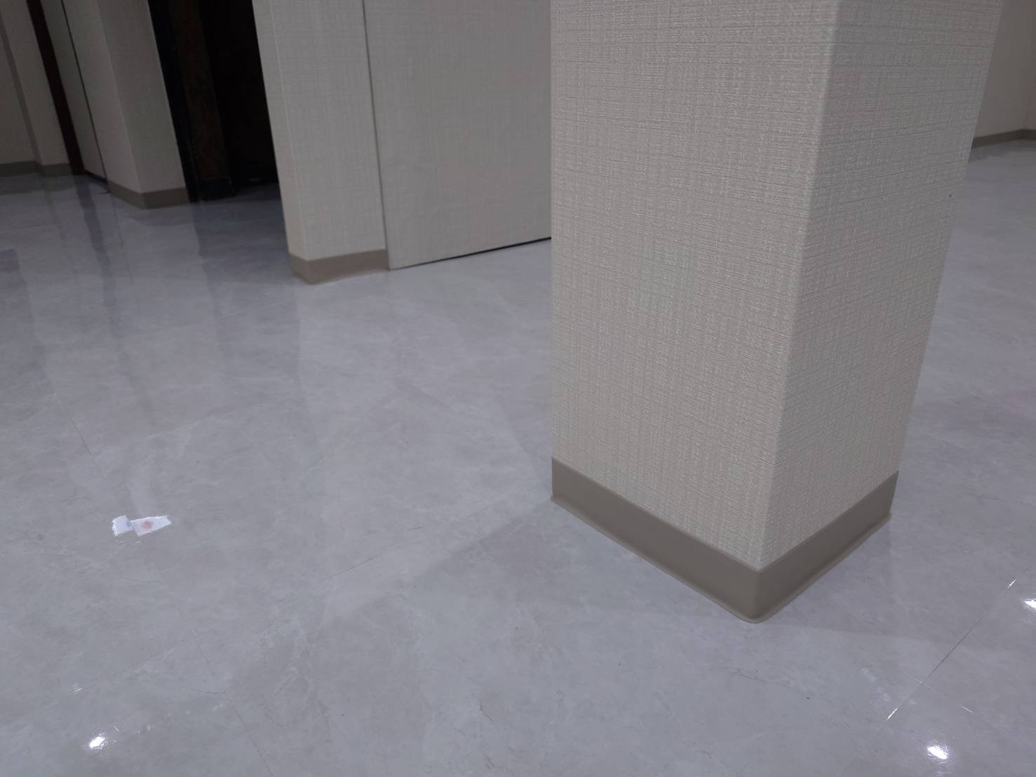 続いてソフト巾木の取り付け作業を終わり床面を綺麗に清掃して完了しましたよ。夜間の電気工事もシャンデリアを天井に取り付けたり壁掛けTVの取り付け工事等が有りますので引き続き宜しくお願いしますね。