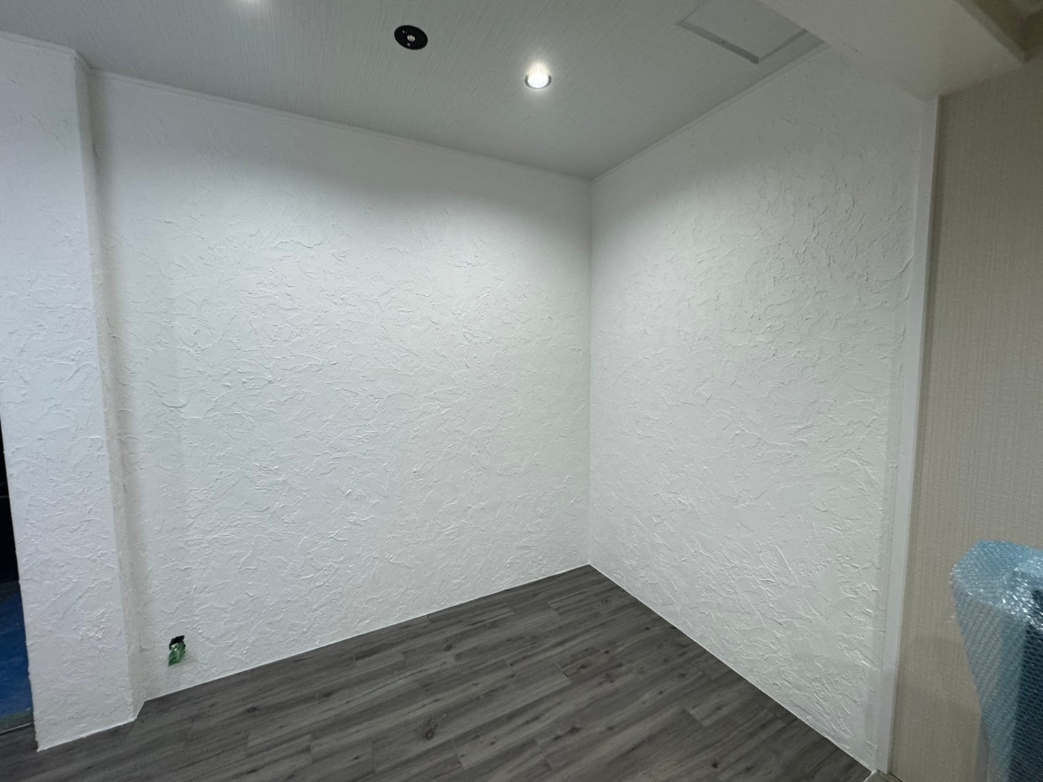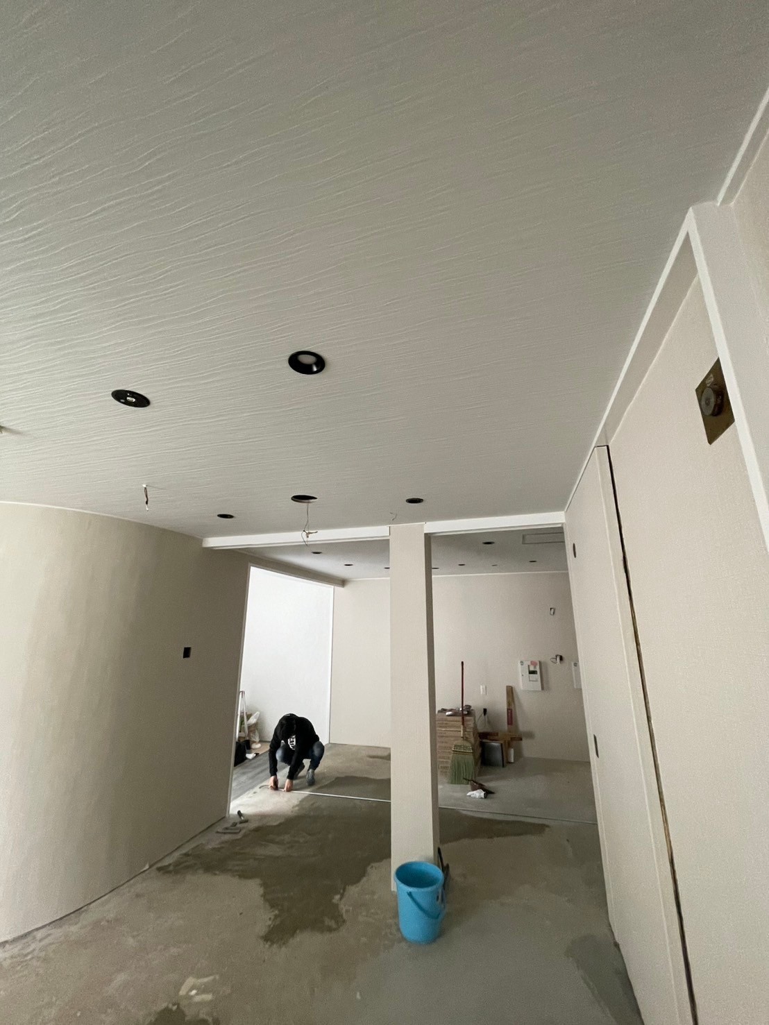 本日の作業は、早朝からジョリパッドの仕上げ塗りを終わりました。看板屋、電気屋、左官屋の職人たちと連携を取りながら予定通り間に合いましたよ(^_-)今日は、朝から1日中フロアタイル張りと夜中から電気工事をしますね(^^)引き続き宜しくお願い致します。