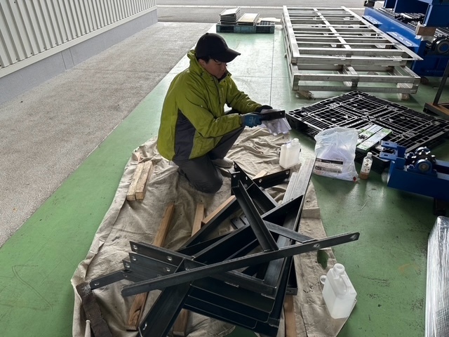 本日は、緊急出荷の鉄材を塗り上げましたが、先輩がまたまた笑いながら鉄材を持って来たので(;’∀’)日程調整して入って行くのと細かい鉄材の塗装前の脱脂作業も本日からやり始めてますよ。引き続き宜しくお願いしますね。