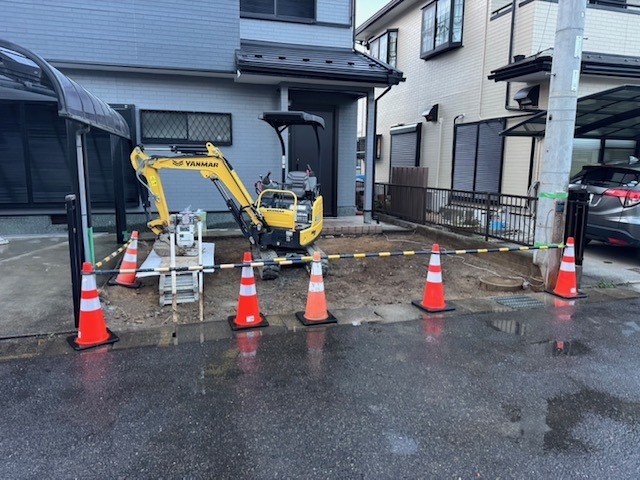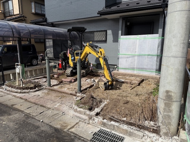 外構工事スタートしました。本日の作業は掘削工事で花壇の撤去なども行いました。ガス管の移設があるのでガス屋さんが作業後に引き続き工事進めていきます。またアップします。