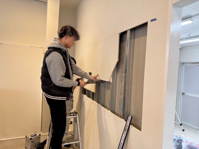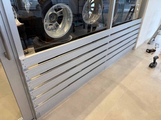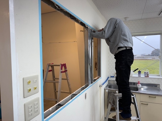 本日の作業は窓の開口を開ける工事と既存のアルミ窓部分をガラスに交換工事とガラスの割れ防止のアルミのバーを設置しました。新店舗オープンに向けて着々と工事が進んでおります。外部の塗装工事も追加でいただきました。引き続きよろしくお願いいたします。またアップします。