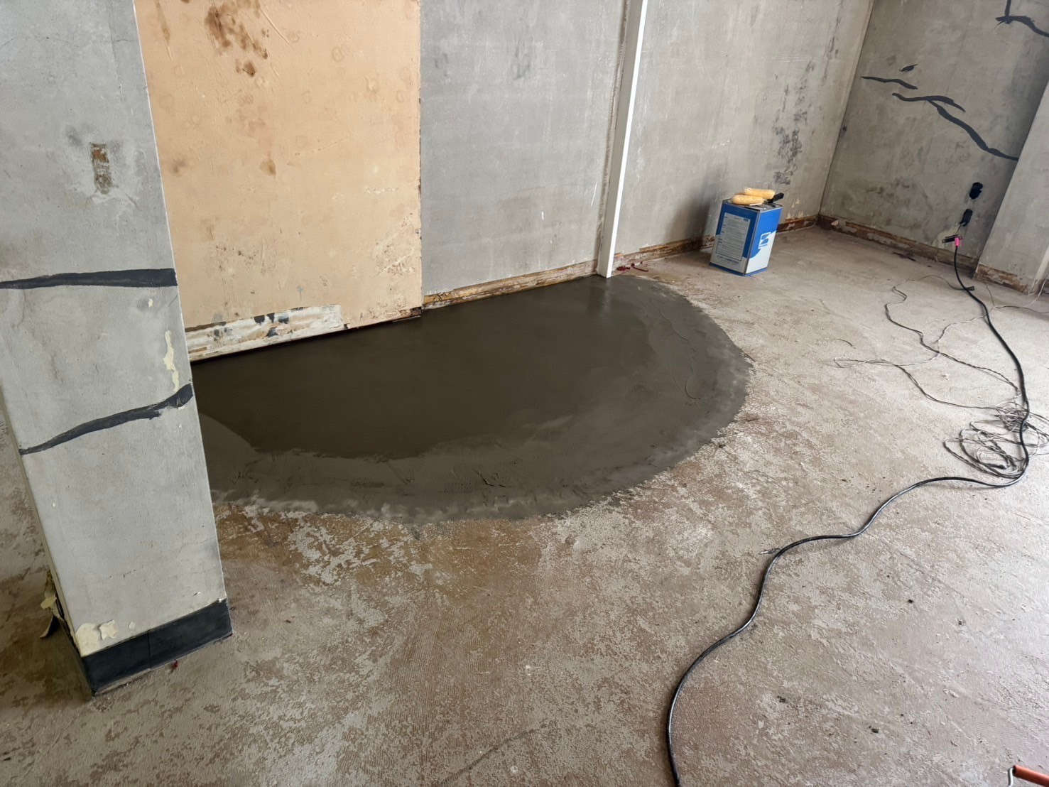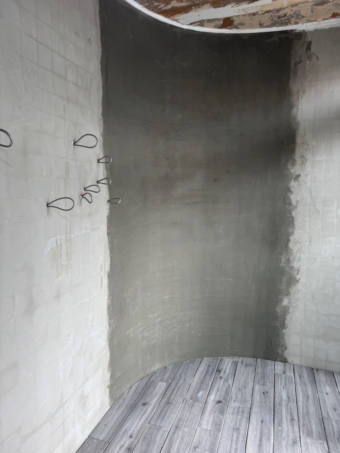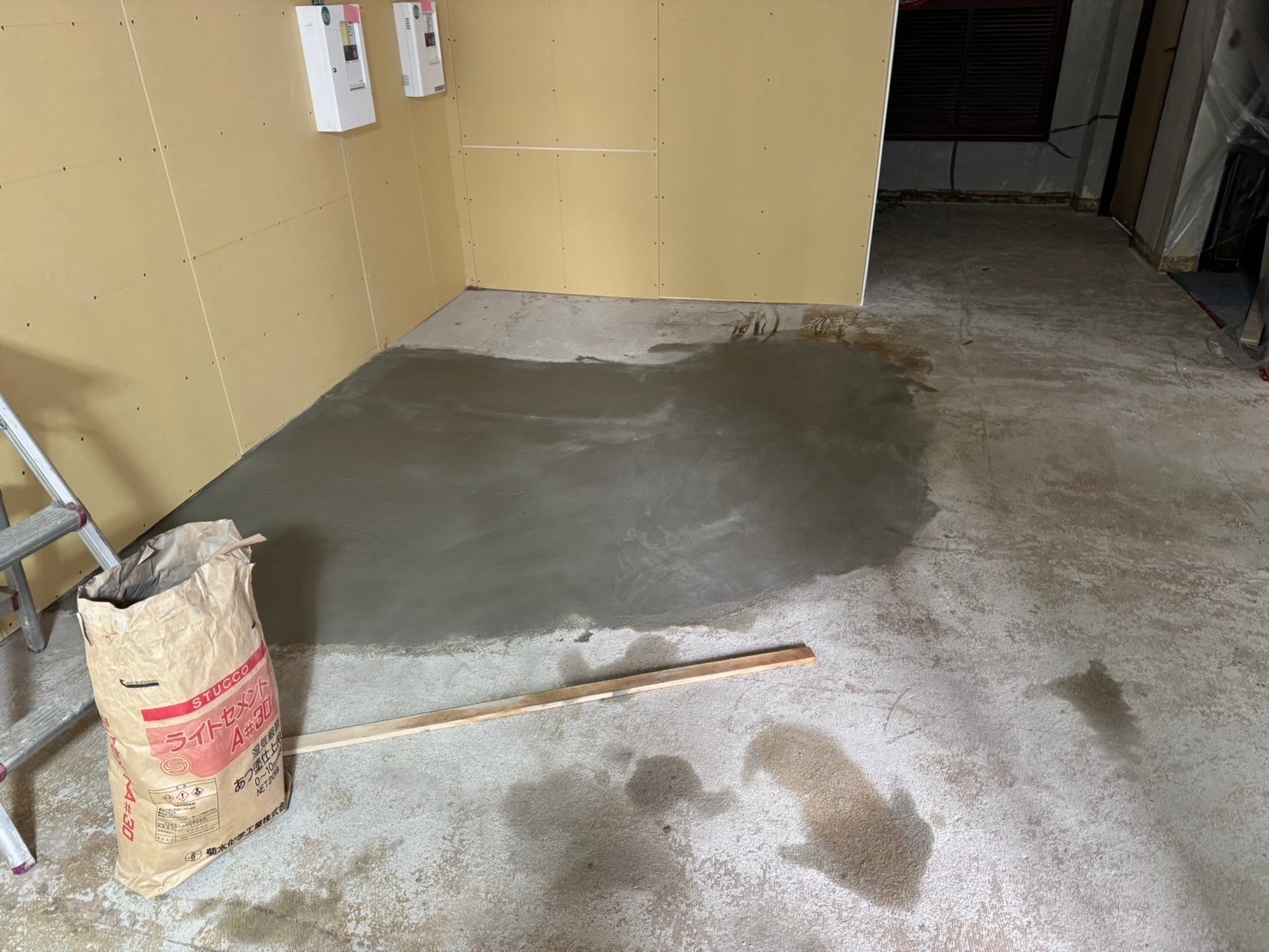最初の左官下地は、天端を合わすのに1回目の左官下地塗りを調整して乾燥させてから2回目に仕上げのしごき作業をして行きます。