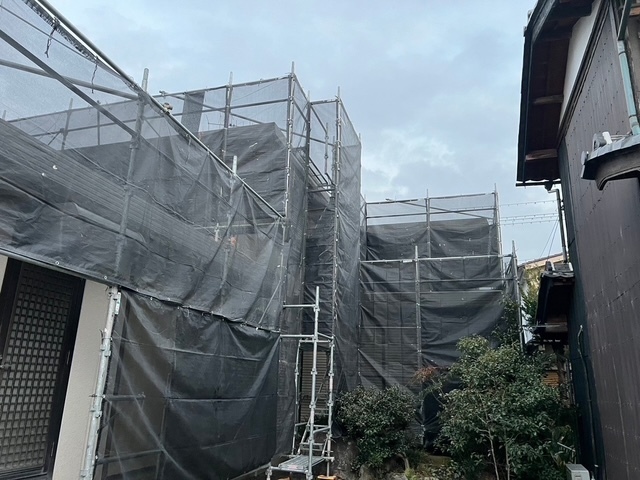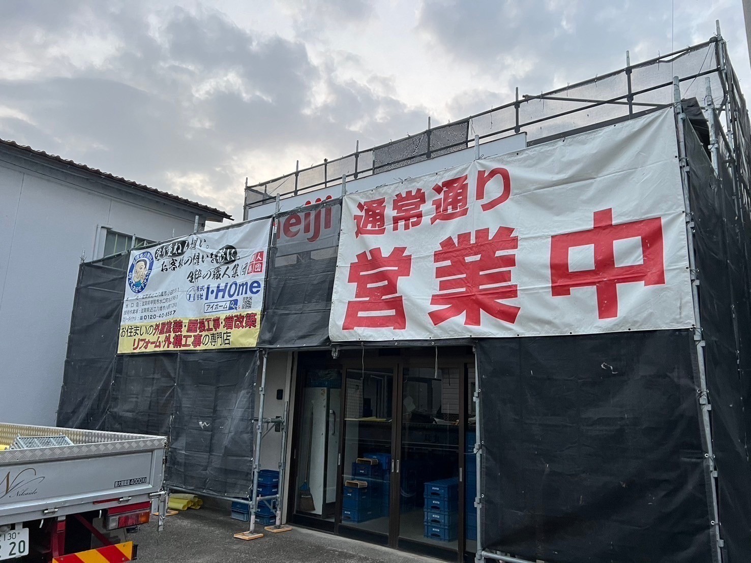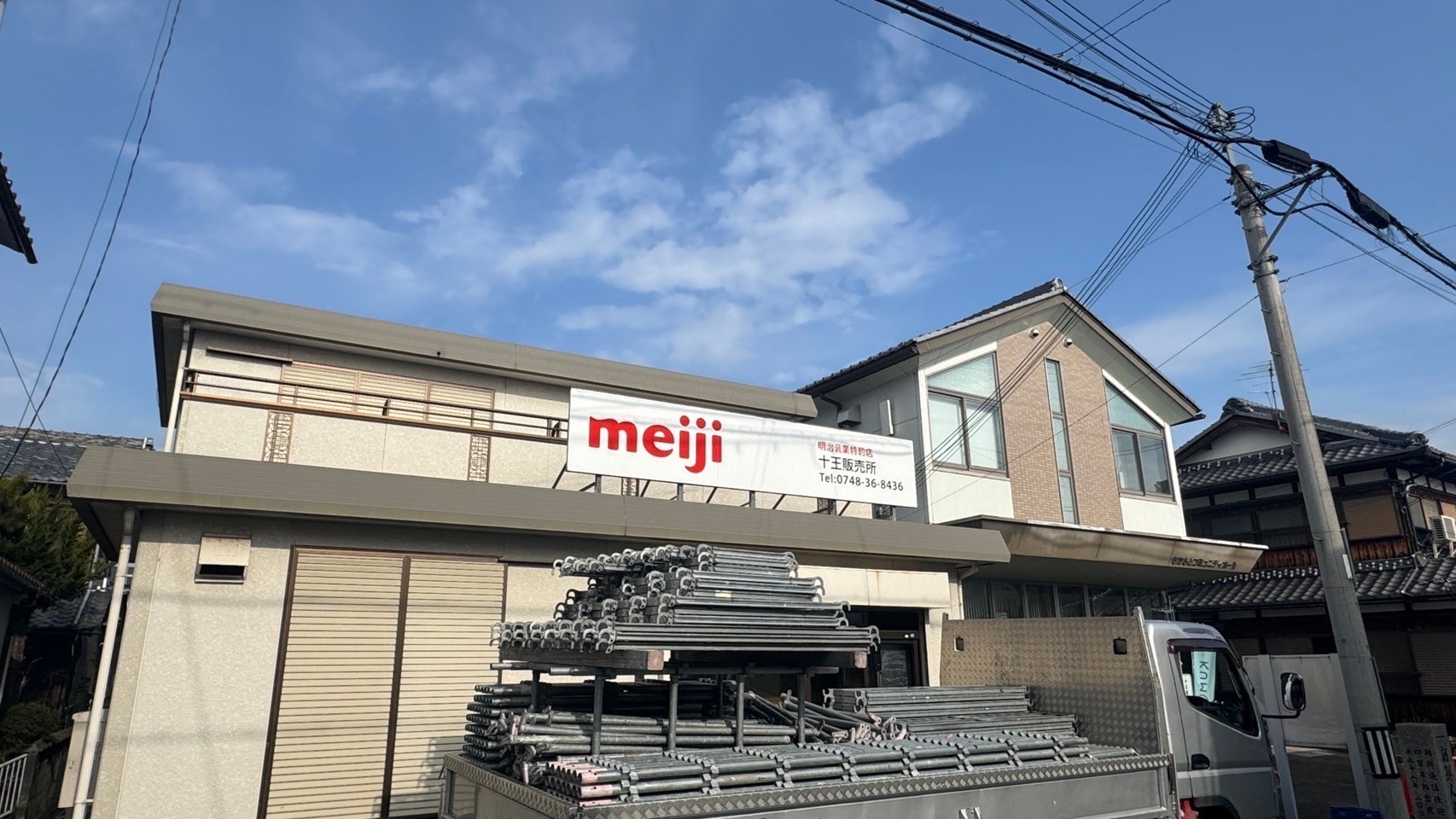 本日から明治牛乳の十王販売所さまの屋根、外壁塗装をするのに足場の組み立て工事をしました。少し空けて3月3日から屋根、外壁の高圧洗浄作業に入りますので宜しくお願い致します。