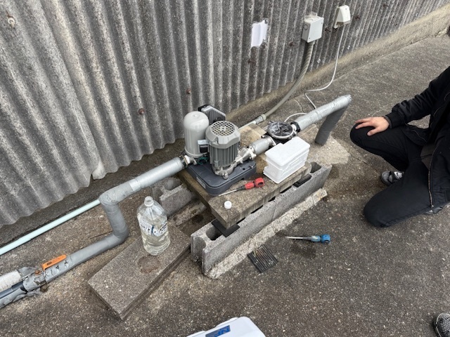 今日は先日凍結で止まってしまった井戸の吸い上げポンプのメンテナンスにお伺いしました。呼び水を入れてしっかり作動確認しました。明日はグリストラップや流し台の移設を行います。引き続きよろしくお願いいたします。またアップします。