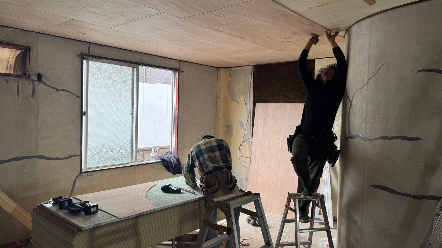 本日は、大工部隊の人数を増やして天井を張り終わったら壁も張り造作工事もかなり進むと思います。またアップしますね(^^)引き続き宜しくお願い致します。