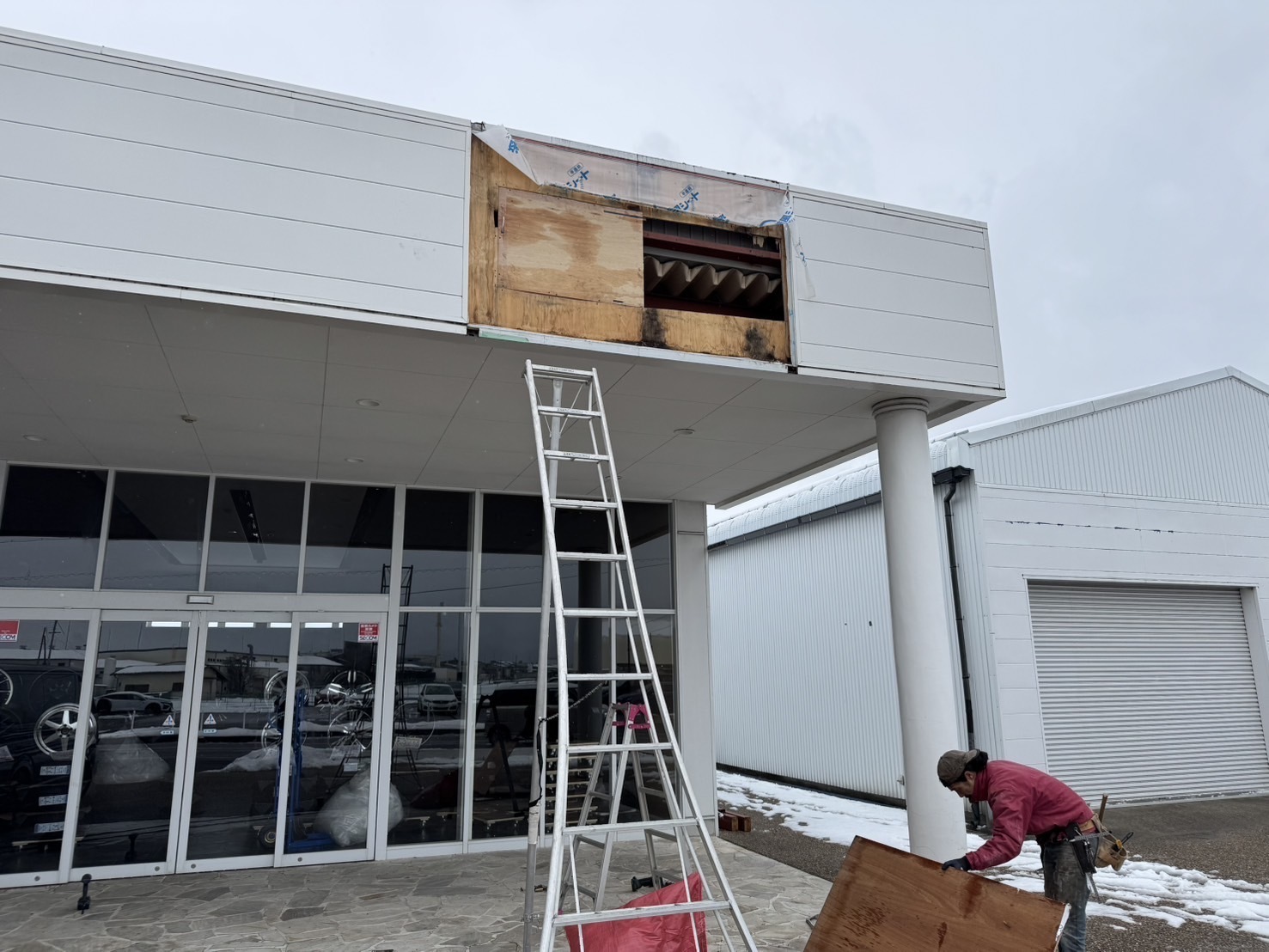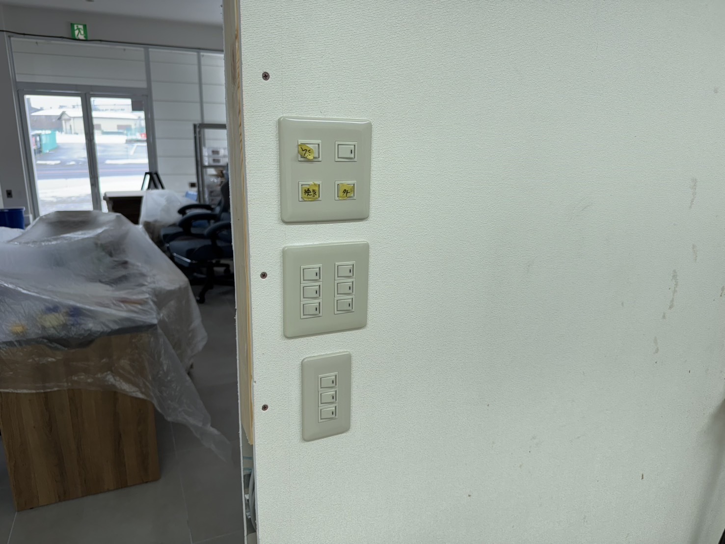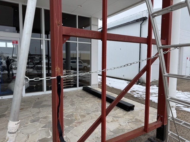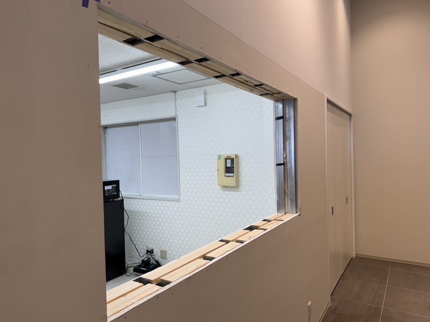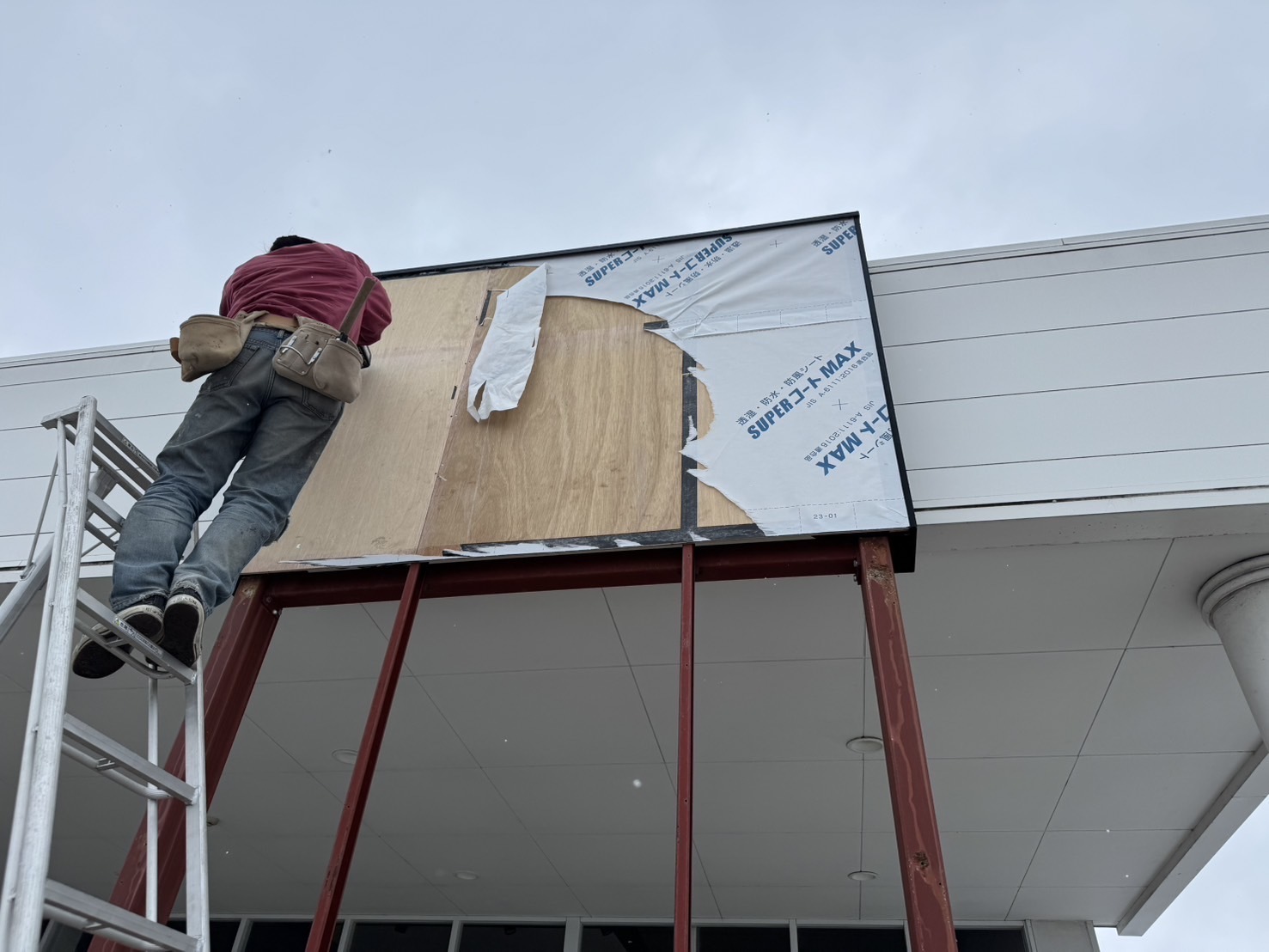 今日の工事はコンセントの移設、開口部分の下地処理、看板撤去を行いました。雪次第になりますが明日も作業予定です。引き続きよろしくお願いいたします。