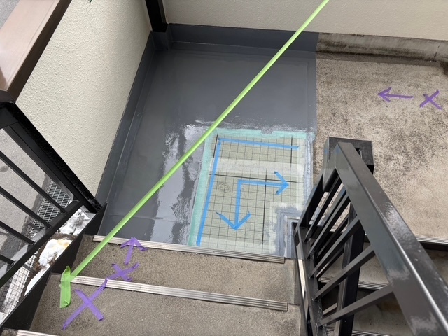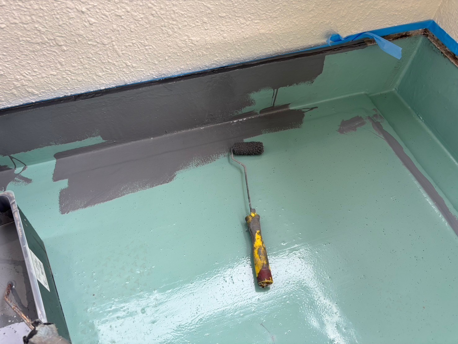 本日も昨日の続きですがウレタン塗膜防水のトップ仕上げまで出来ました。後は、乾いてから只今住人さんに歩いて使ってもらってる床部を防水工事しますね(^^)引き続き宜しくお願い致します。