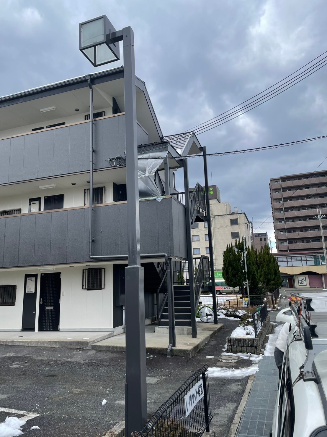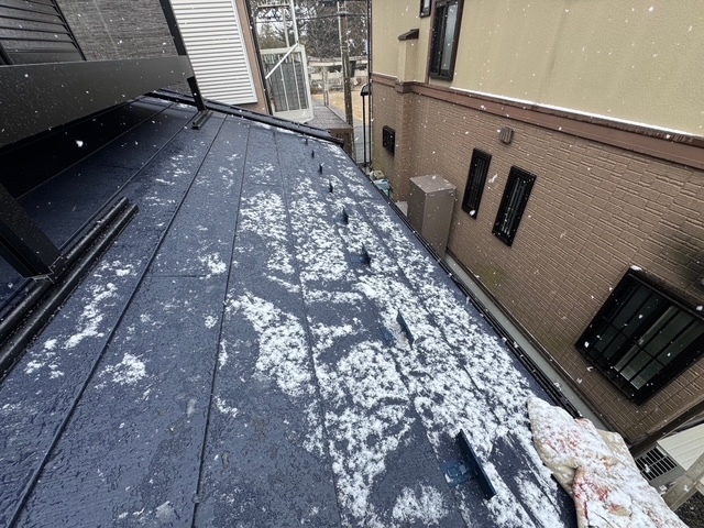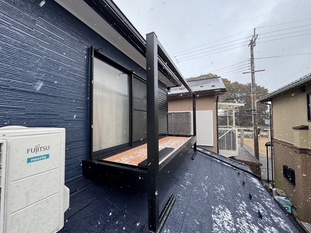 本日の作業は、足場の解体後にテラスパネルの復旧作業と下屋根の掃き出し窓の外に新しいバルコニーの組み立て工事をしてましたが雪が降ってきて足元が滑り危ないので後日また引き続き工事をしますね(^^)