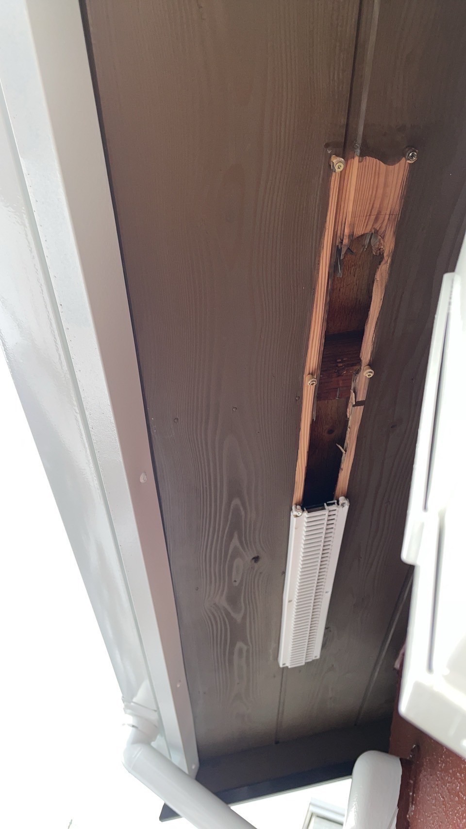 先日、2階の天井の換気口が老朽化で半分折れてベランダ床に落ちてきたらしいので前日に天井部の裸の木板を塗装して今日、換気口を取り付け致しました。ありがとうございました。お家の事ならアイホームに何でもお任せ下さいね(^^)