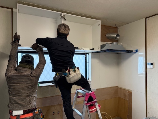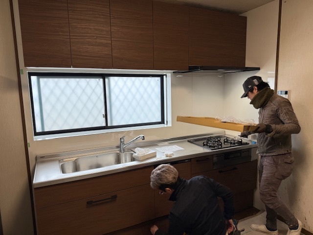 今日の作業は換気扇の新規設置とキッチン据え付けとクロス工事を行いました。キッチン素敵な仕上がりです。キッチンパネルも職人が綺麗に施工してくれて以前より明るくなったように感じます。クロスも洋間2部屋施工進めました。アクセントも素敵でホテルのような仕上がりです。明日もクロス工事引き続き進めていきます。またアップします。