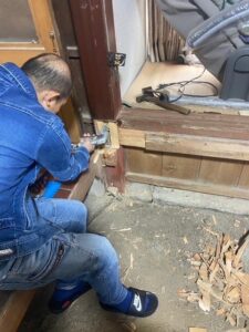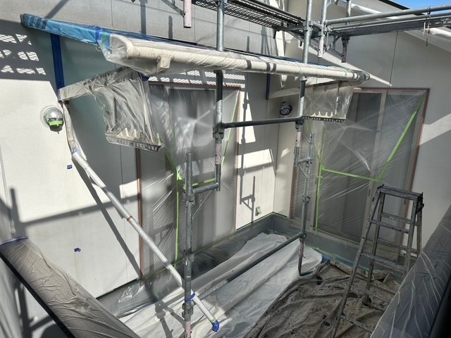 本日も昨日の続きの養生作業をしました。昼からは、当社のミーティング食事会をしましたので午前中で上がりましたが明日も引き続き宜しくお願い致します。