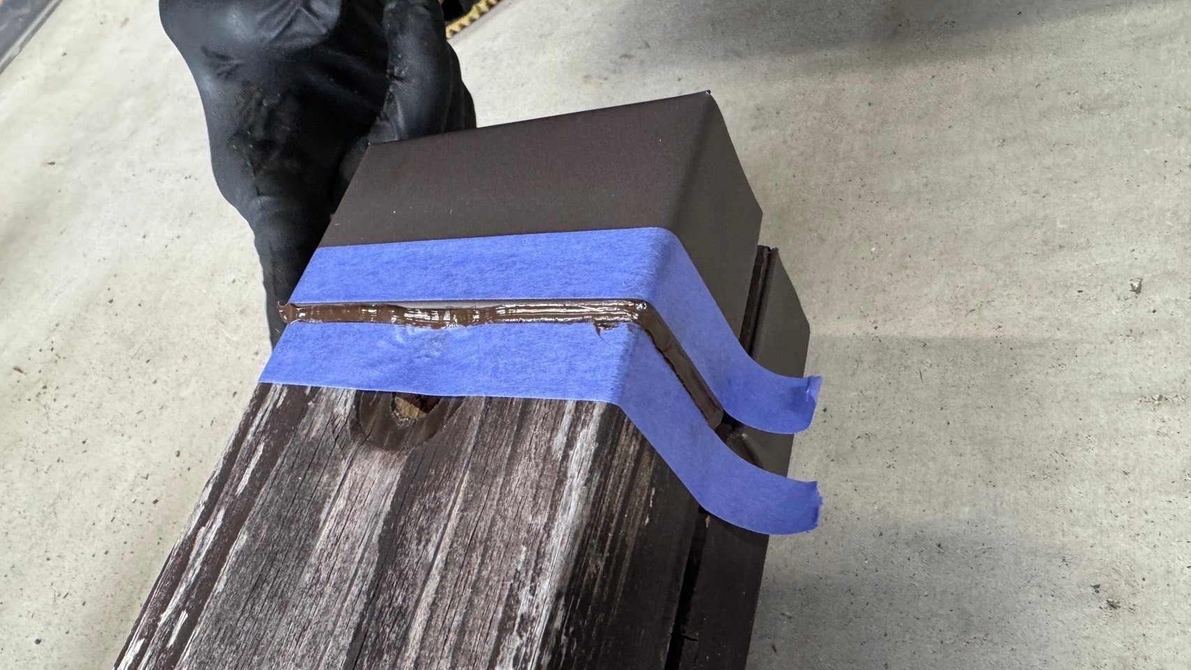 本日の作業は、木部の柱の上と根本が経年劣化で腐食してましたので平板板金で箱型の形を作りカバー工事して板金周りをシール打設しました。もうこれで安心ですよ(^^)次回は、水性ガードラックで柱を塗っていきますね(^^)
