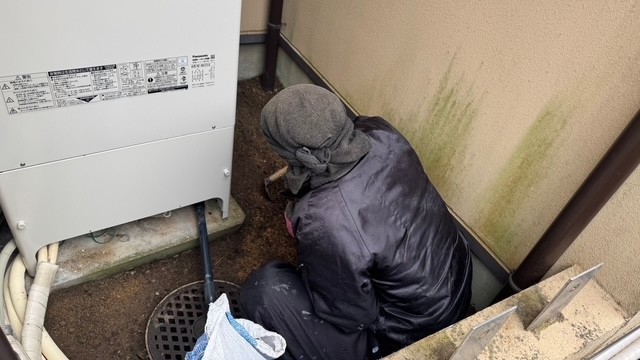 本日の作業は、エコキュートの周りに雑草が生えて毎回刈るのが大変だと相談を受けましたので砂利と草を綺麗に鋤き取ってから今日は、代表の石橋がコンクリートを打設して仕上げ押さえしました。明日も引き続き宜しくお願いしますね(^^)