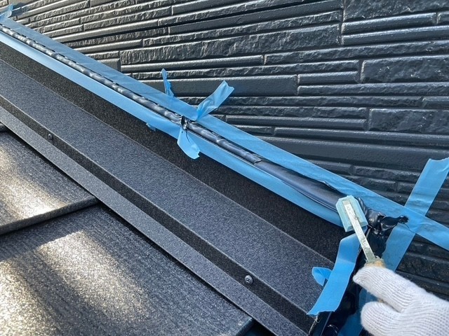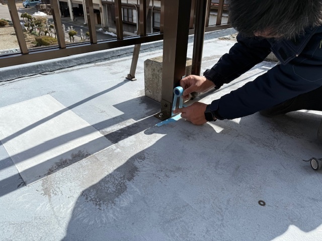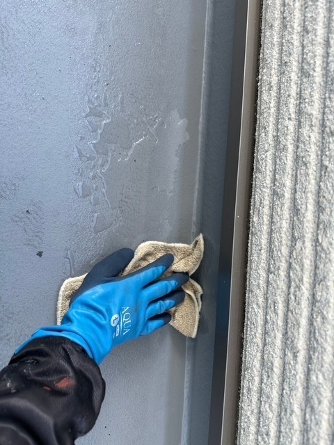 本日の作業は、外壁のシール打設する箇所に養生テープをしてから少しシール工事もしていきました。明日も引き続き宜しくお願い致します。