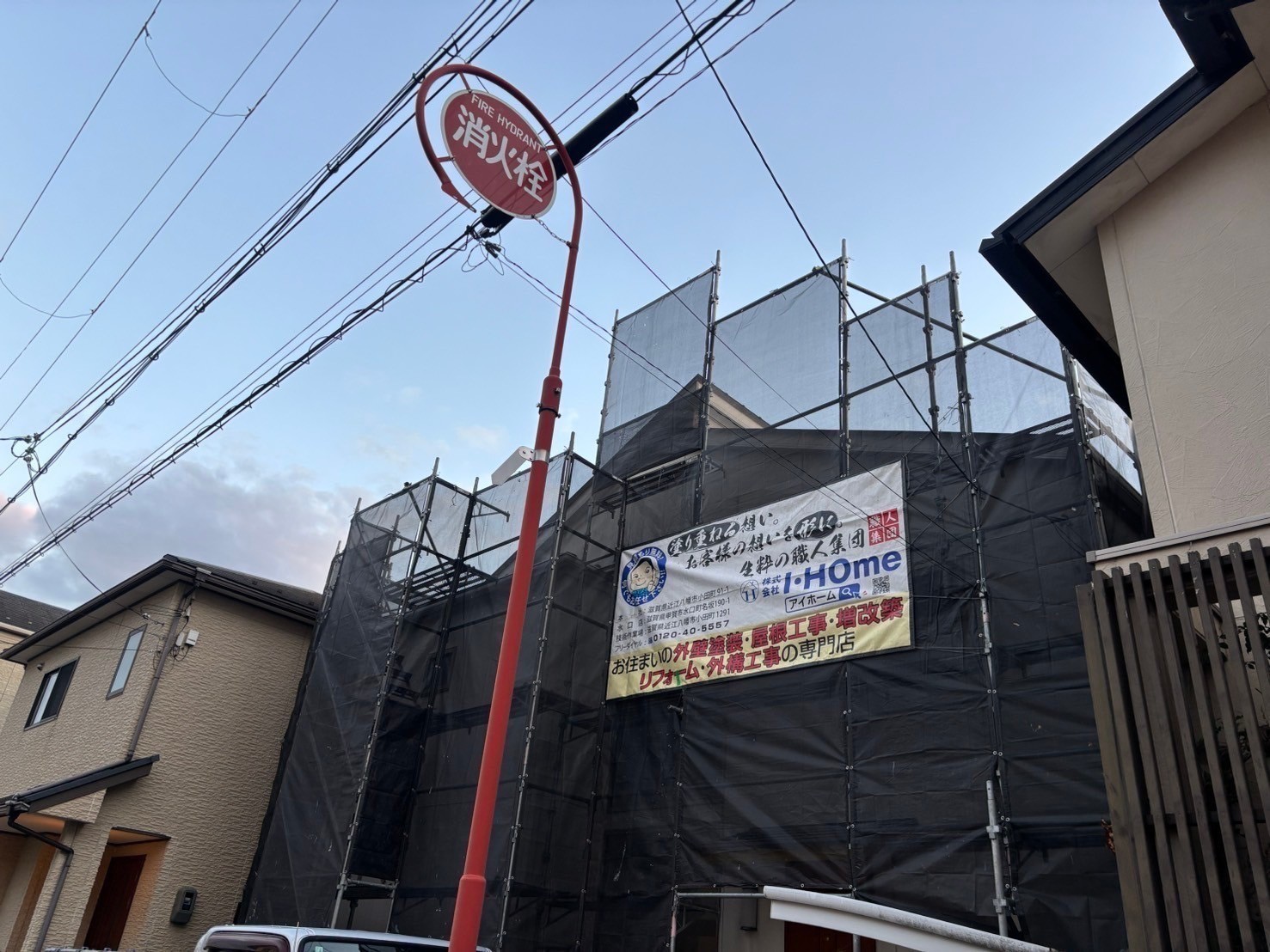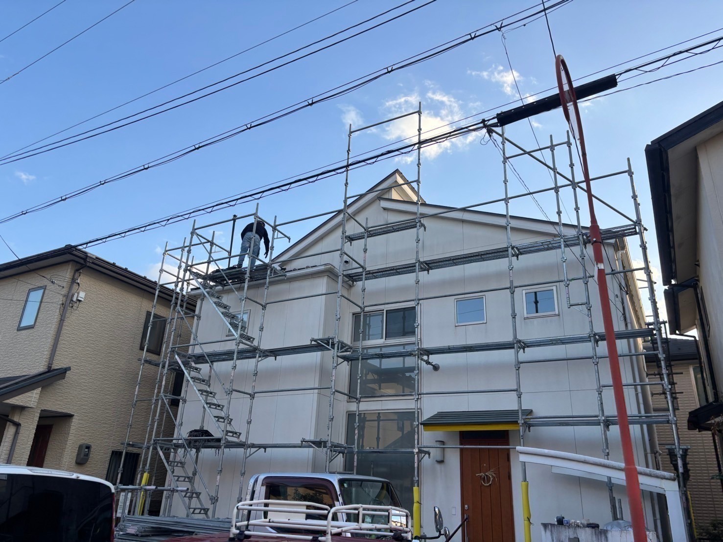今日からUさま邸の屋根、外壁塗装をする為に足場の組み立て工事をしました。明日も引き続き宜しくお願い致しますね(^^)