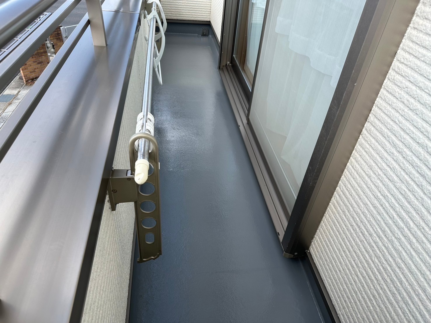 本日の作業は、ベランダの床の水溜まりをしっかり拭き乾燥させてからオートンウレアックスHGの材料でプラーマーで下塗りをしてから中塗りTOP仕上げをして完了致しました。綺麗になりましたね。10年間、当社で保証させて頂きますので安心して下さいね。(^^)ありがとうございました。お家の事ならアイホームに何でもお任せ下さいね(‘◇’)ゞ