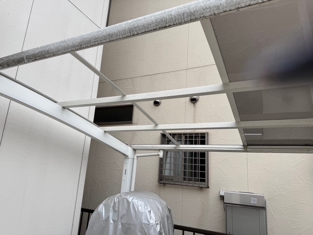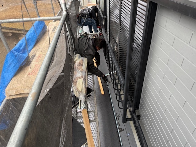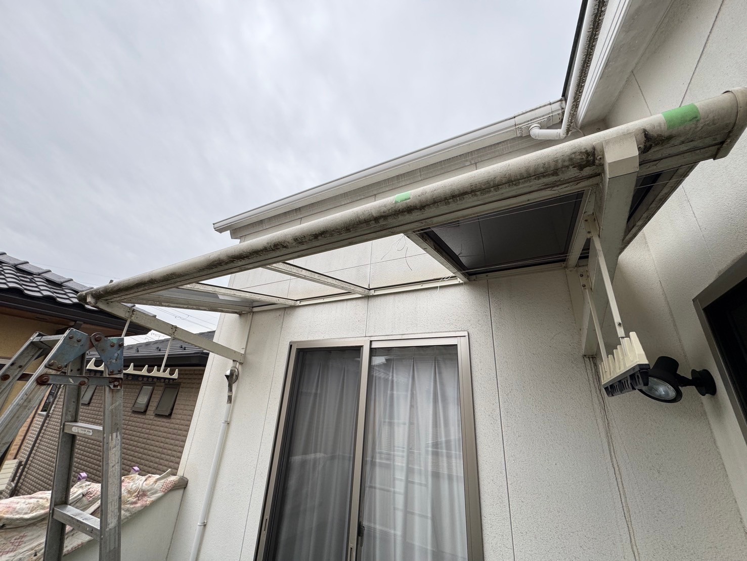 毎日寒いですね。明日は、足場の組み立て工事をするのにサイクルポートとベランダのテラスのパネルが干渉してきますので取り外し作業を致しました。これで明日しっかり足場の組み立て工事ができます。引き続き宜しくお願い致します。