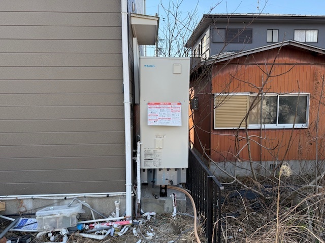 エコキュート交換工事を実施しました。寒い日が続く中お風呂に入れない日が何日か続きご不便お掛けしました。お待たせしましたが今日から温かいお風呂に入って頂けます。以前に使用されていた機種が追い焚き無かった事で不便されてたので今回は追い焚き配管工事もして追い焚きが使用できるようになりました。Kさま大変お世話になり、ありがとうございました。