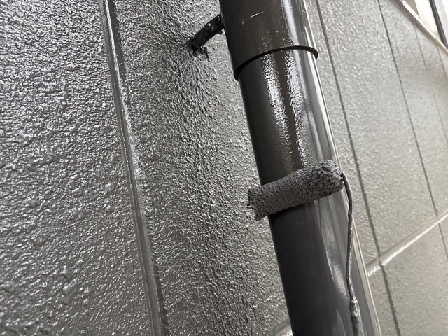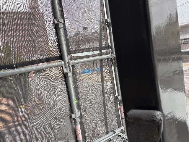 本日は、雨樋と鉄骨の仕上げ塗りをしまして塗装養生も完成した所を外していきました。引き続き宜しくお願い致します。